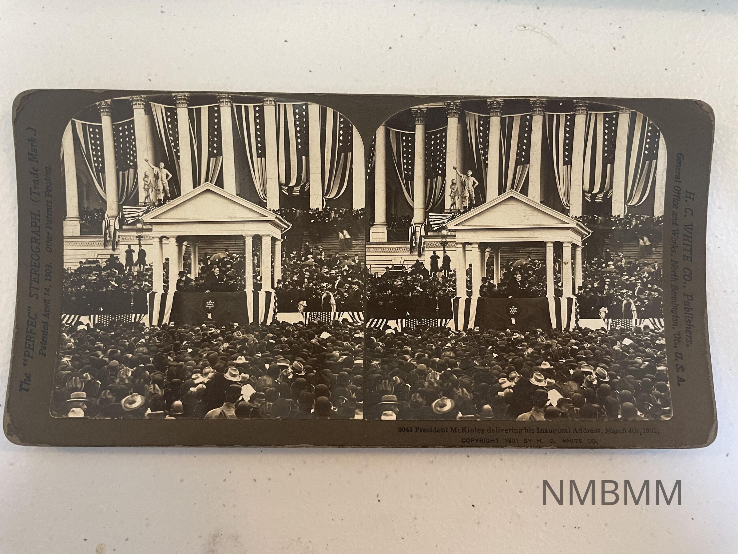 This item is a stereograph containing two images of President McKinley delivering his second inaugural address in Washington, D.C. Copyright in 1901 by H.C. White