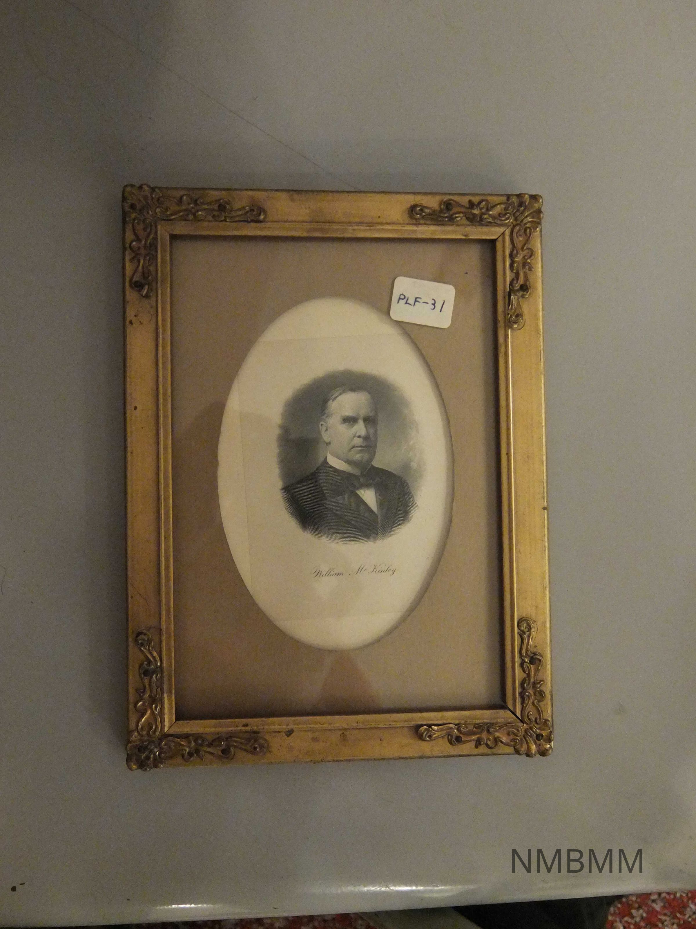 Engraving of President McKinley in gold frame with oval matEntry/Object ID