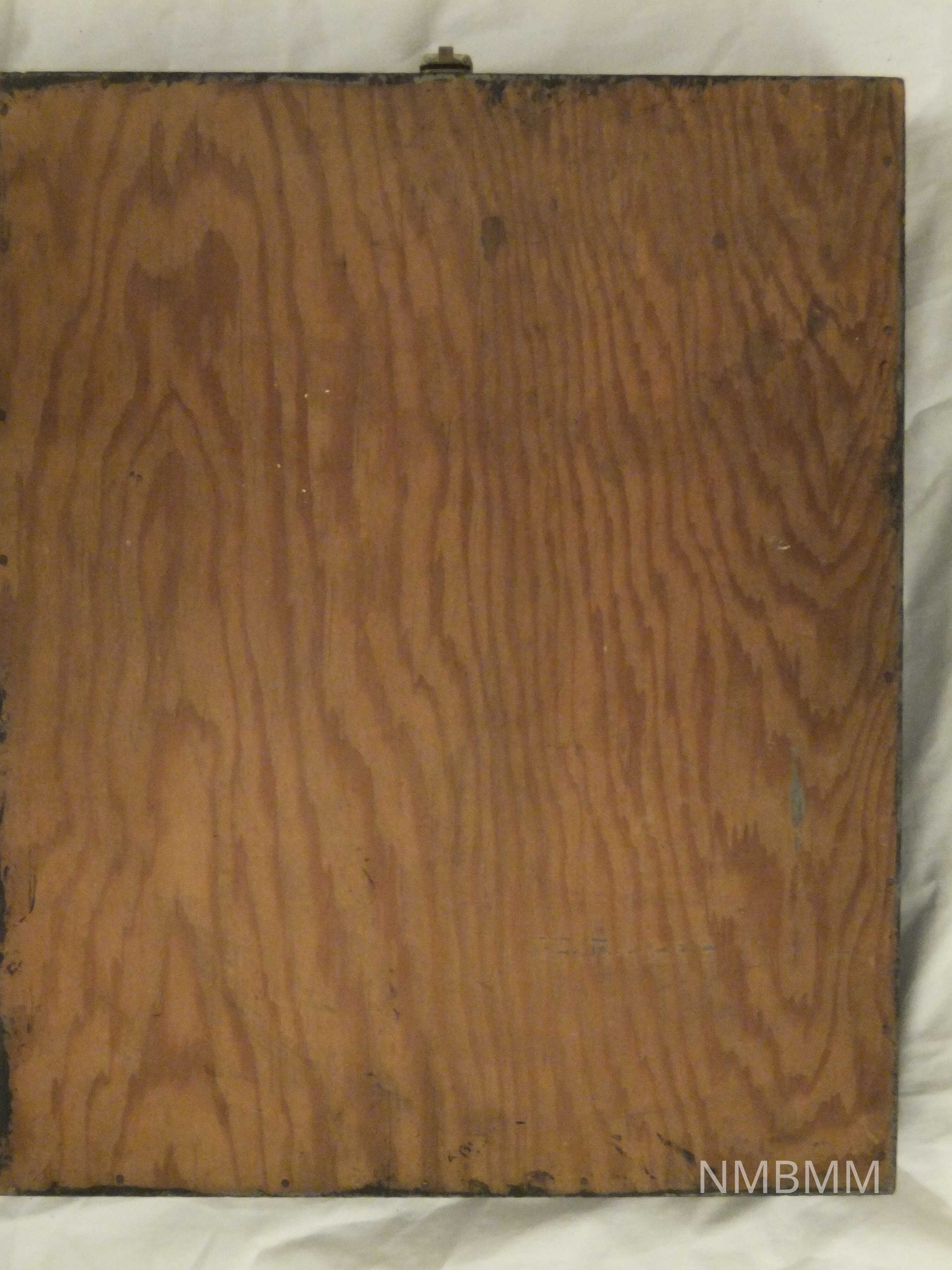 Display of ten paperweights in black framed shadowbox. The frame also has stickers on it, to identify the paperweights as if on a grid.