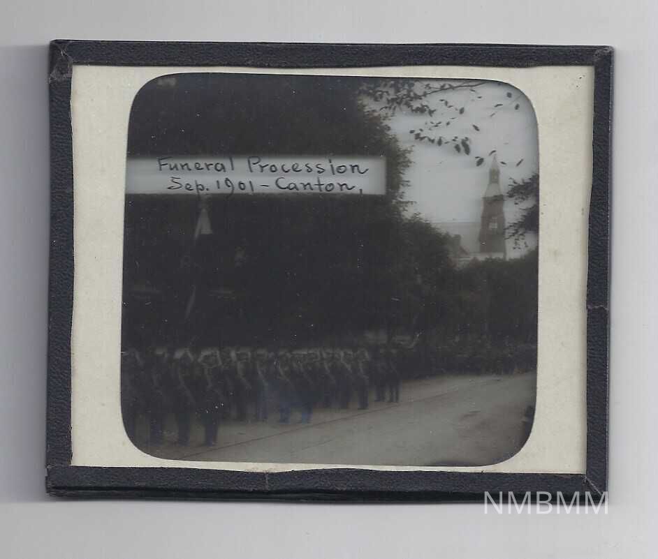This is a negative glass slide that shows a view of McKinley's funeral procession through Canton, Ohio. The slide has text that reads "Funeral Procession, Sep. 1901-Canton."Collection