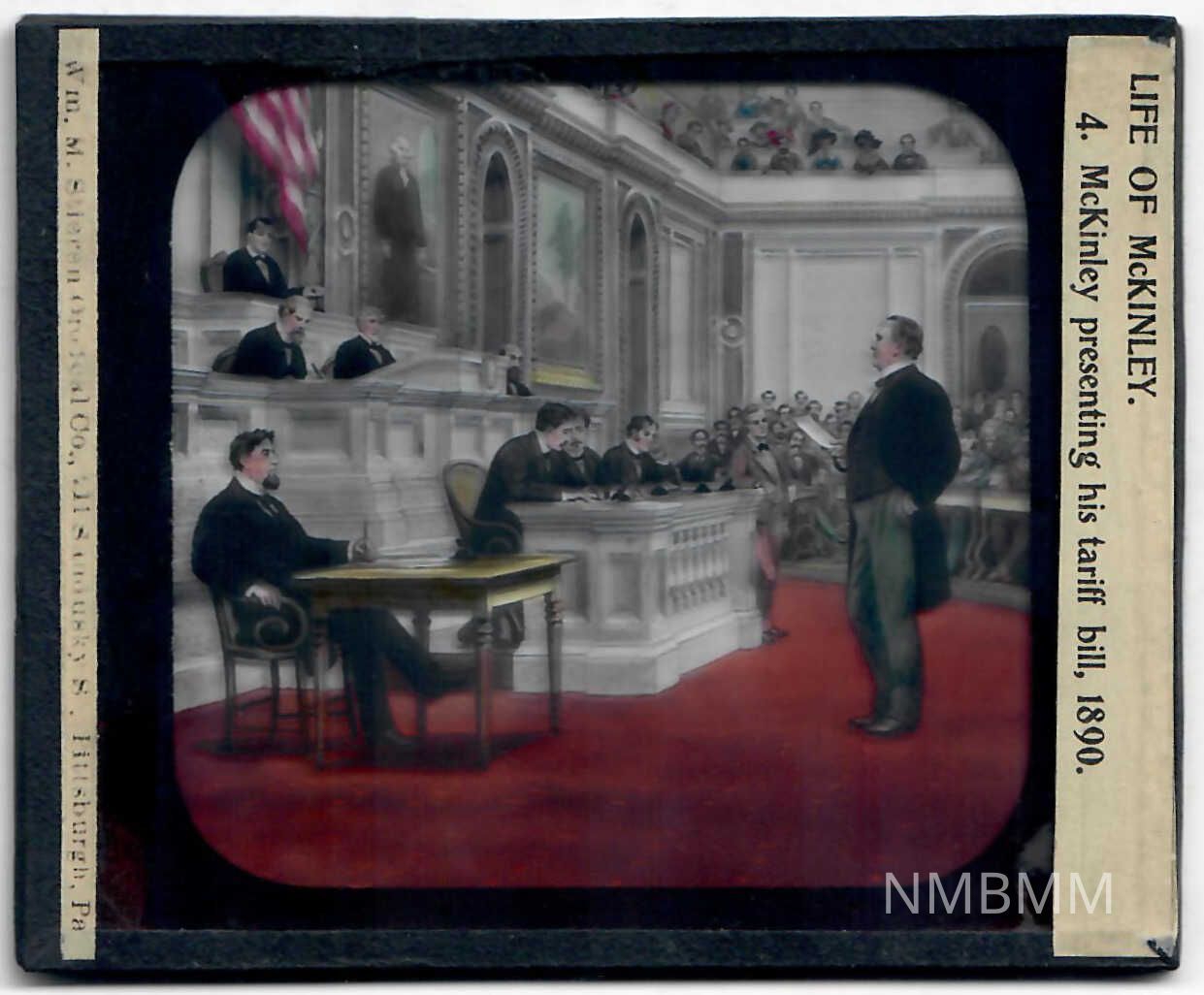 Life of McKinley 4. McKinley Presenting his tariff bill, 1890 front: Copyright: McKinley Birthplace Museum; Origsize: 3.25 x 4 inches; Origformat: Artifact