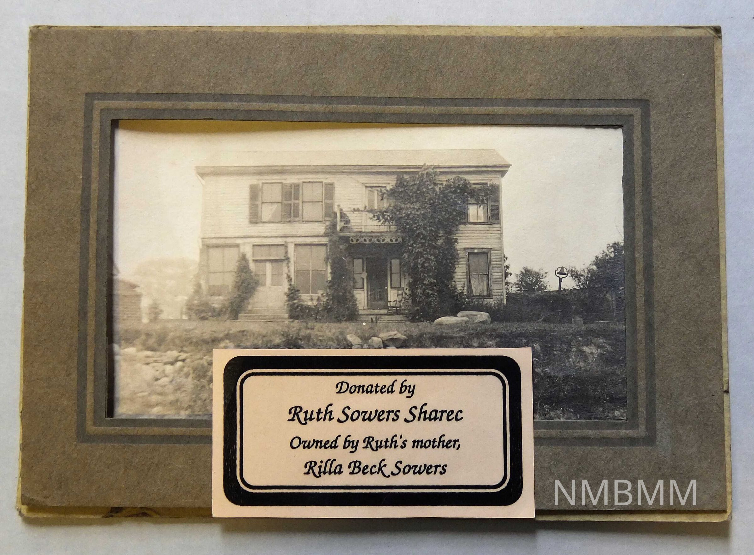 Photo of the original McKinley Birthpplace Home, Niles, Ohio. Photo is sepia-toned, and matted in grey.Collection