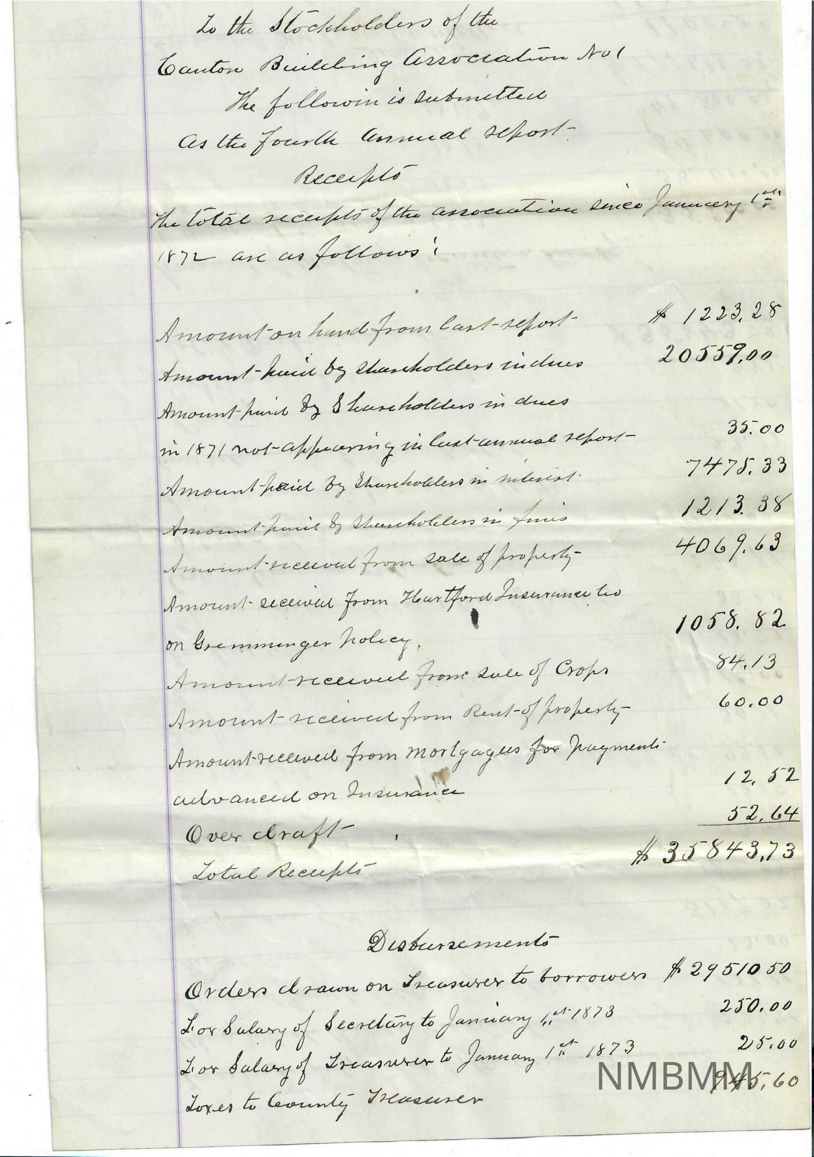 2010.1.2275 Dec. 31, 1872 Treasurer's Report Top Front: Origsize: 7.750x24.875; Origformat: Artifact