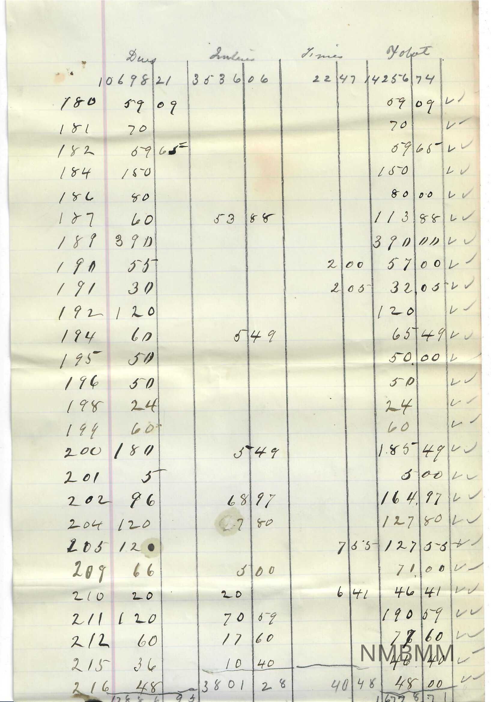 2010.1.2283f Dues, Interests, Fines List  Front: Origsize: 7.875x12.375; Origformat: Artifact