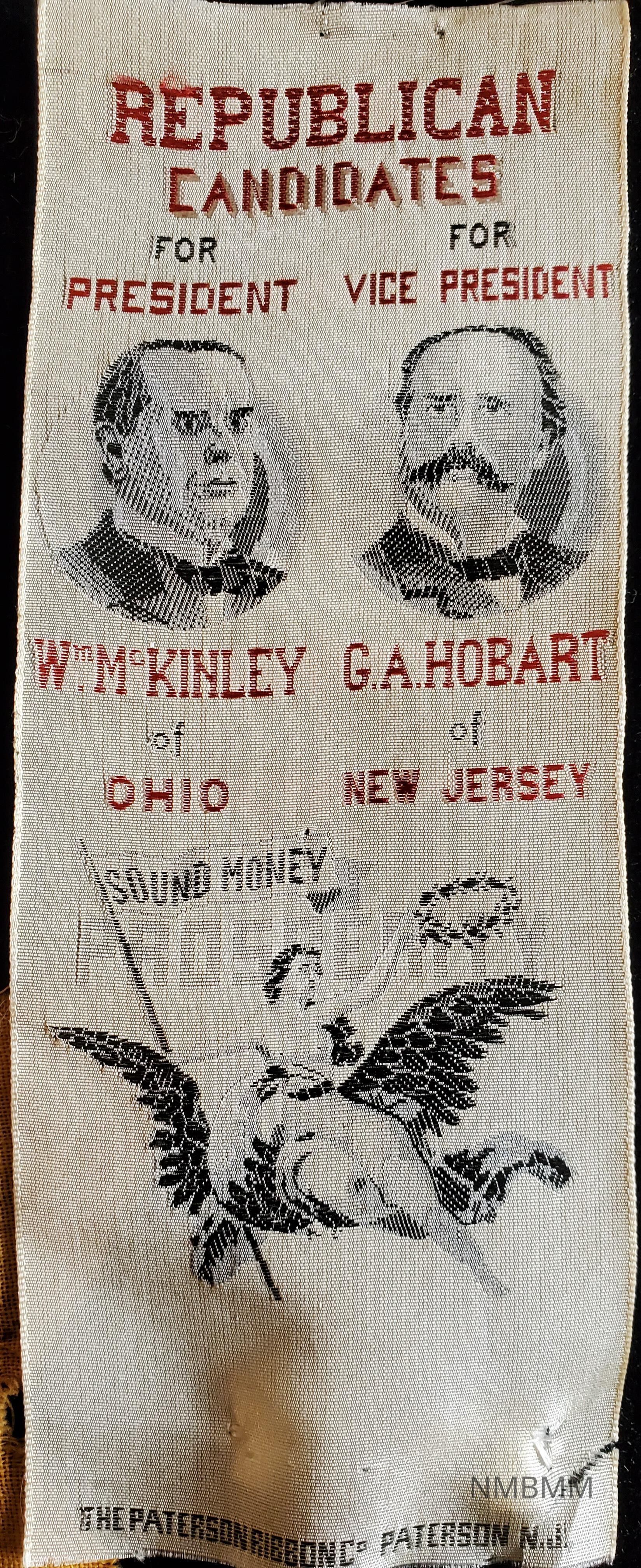 McKinley and Hobart Jugate Woven Silk Ribbon