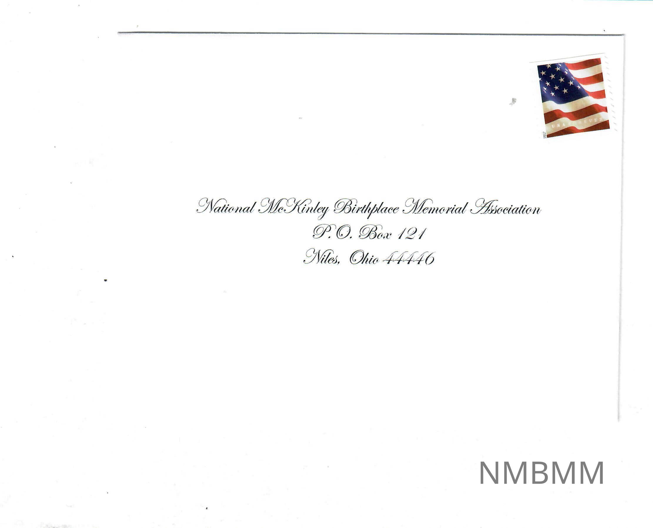 National McKinley Birthplace Memorial Centennial invitation response envelopeEntry/Object ID