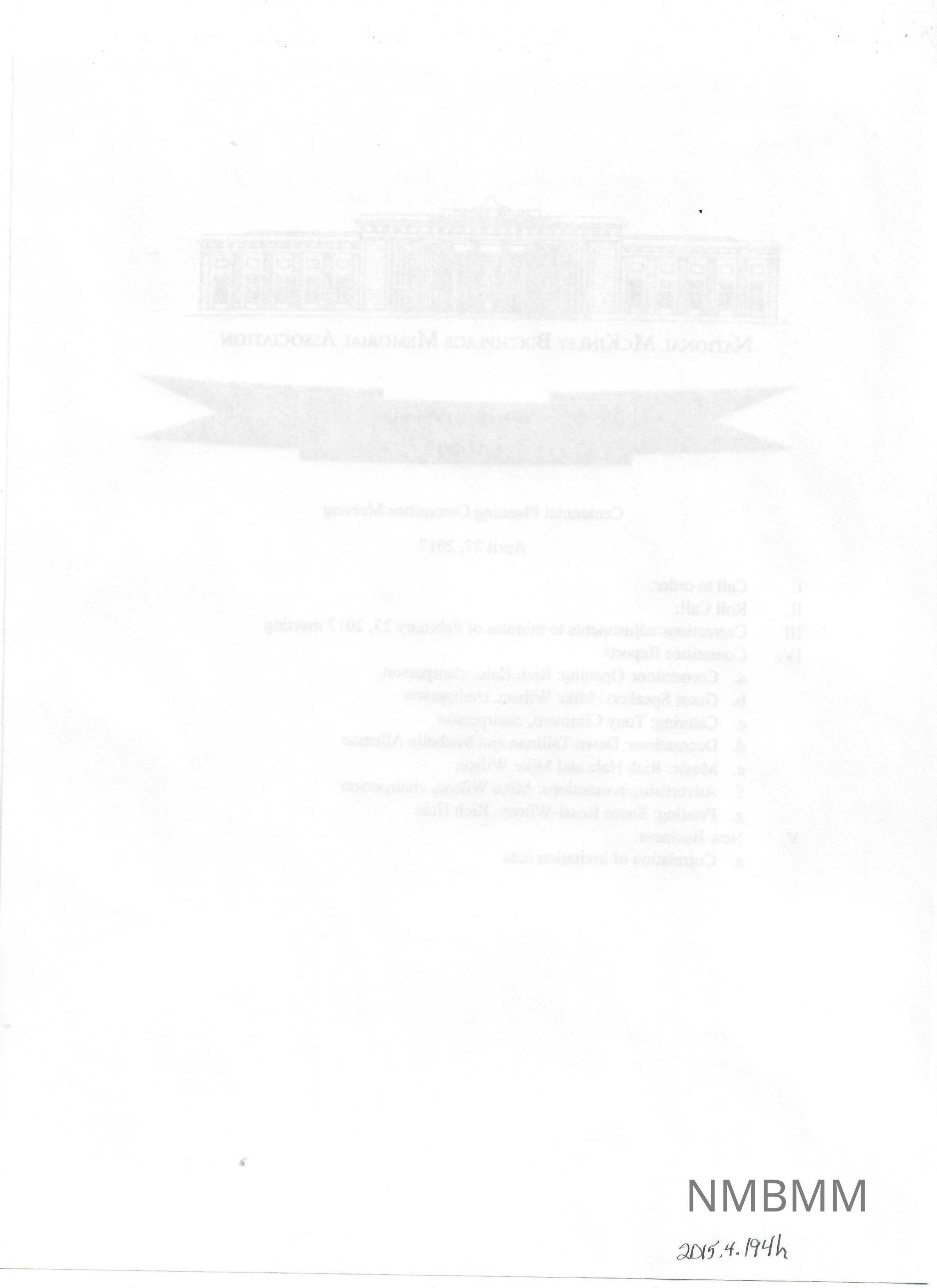 4.27.2017 Centennial Planning Committee Meeting agendaEntry/Object ID