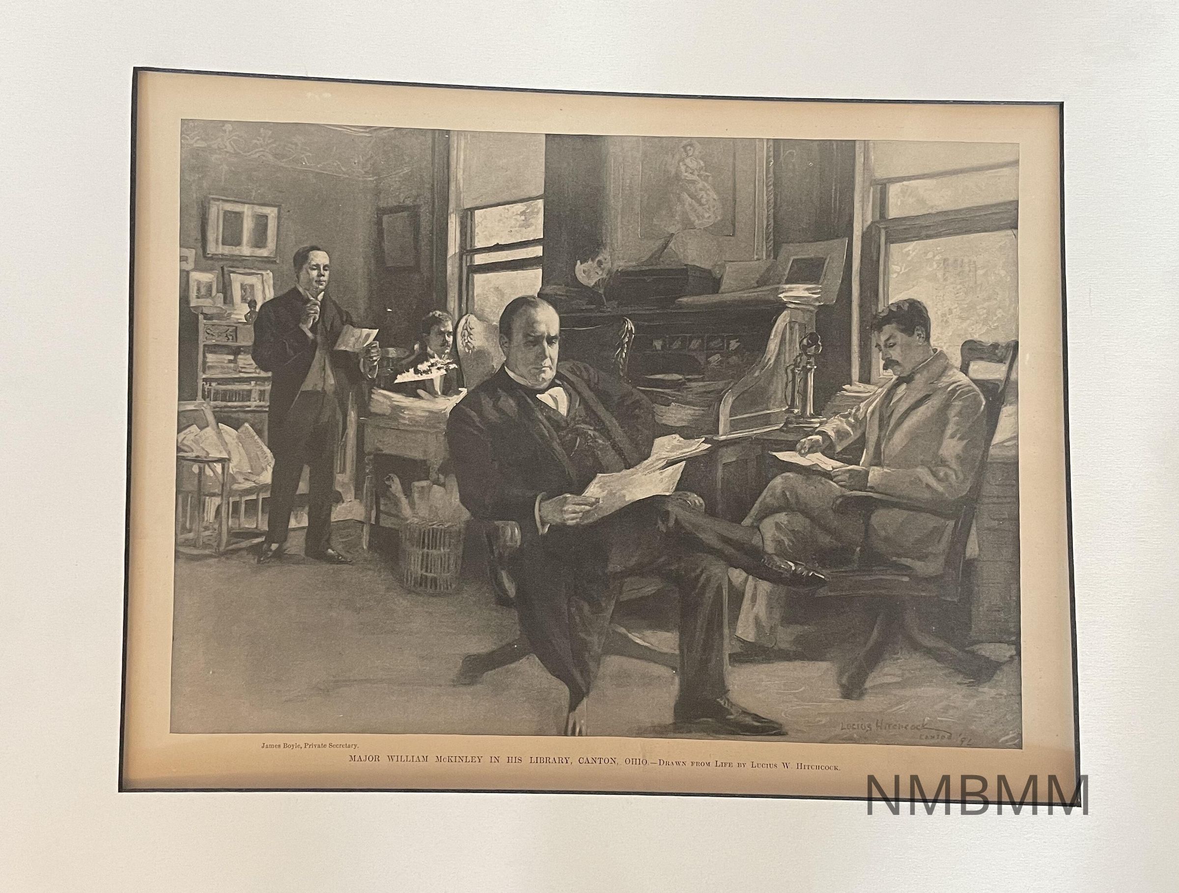 The caption reads "Major William McKinley in his library Canton, Ohio Drawn from life by Lucius W. Hitchcock."