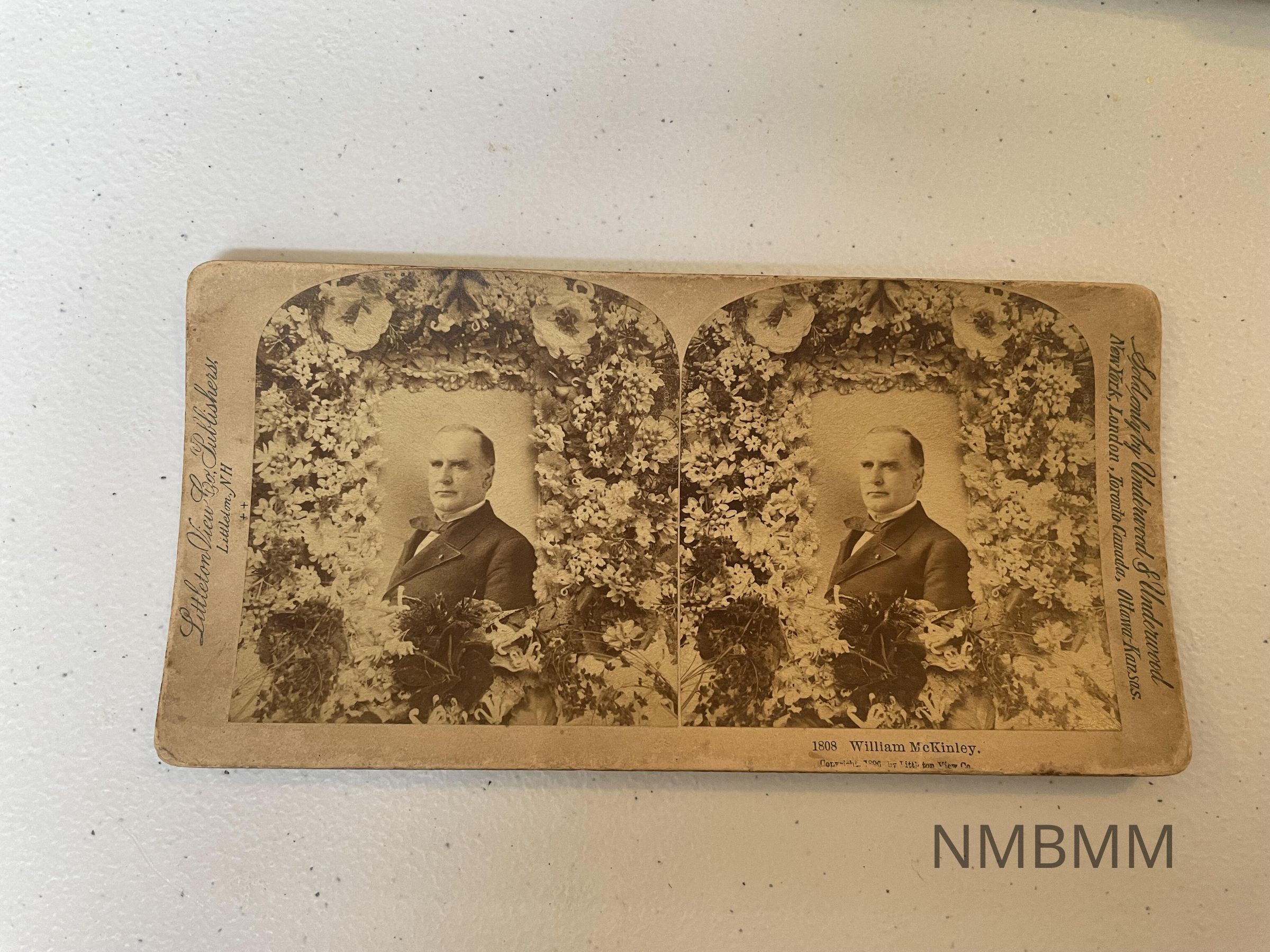 William McKinley. Stereoscopic view of William McKinley's image surrounded by flowers. The caption reads as follows: