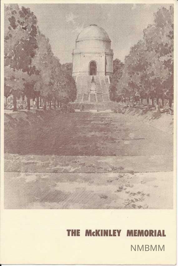 The item is a pamphlet titled the McKinley Memorial. it gives an overview of his political career and assassination, with a small paragraph on the memorial itself. A picture of the memorial is featured on the front.Collection