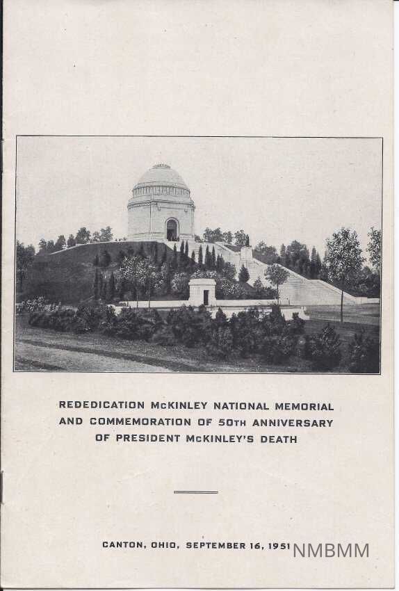 A program for the Rededication of the McKinley National Memorial and Commemoration of the 50th Anniversary of President McKinley's death, held in canton, Ohio, September 16, 1951.