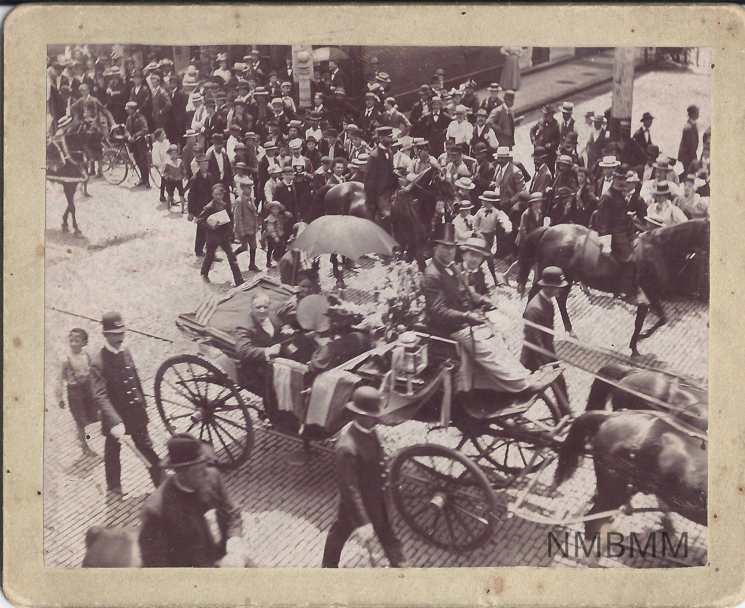 Picture of President McKinley and his wife in a carriage returning to Canton after his inauguration.Entry/Object ID