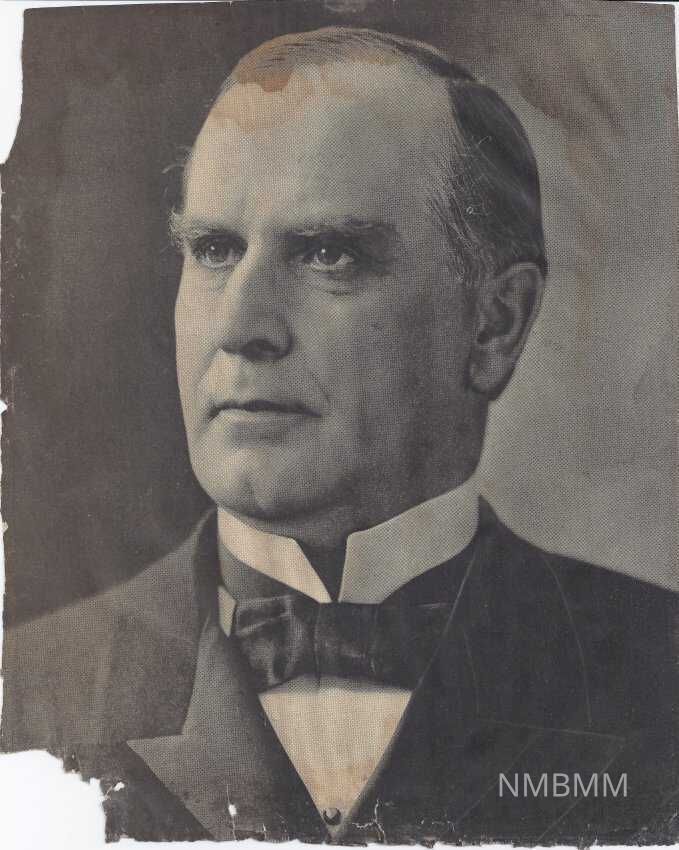 This is a copied portrait of William McKinley. It is in poor condition with many tears, frayed edges and water marks. It is in black and white and measures 10 by 8.5 inches.Collection