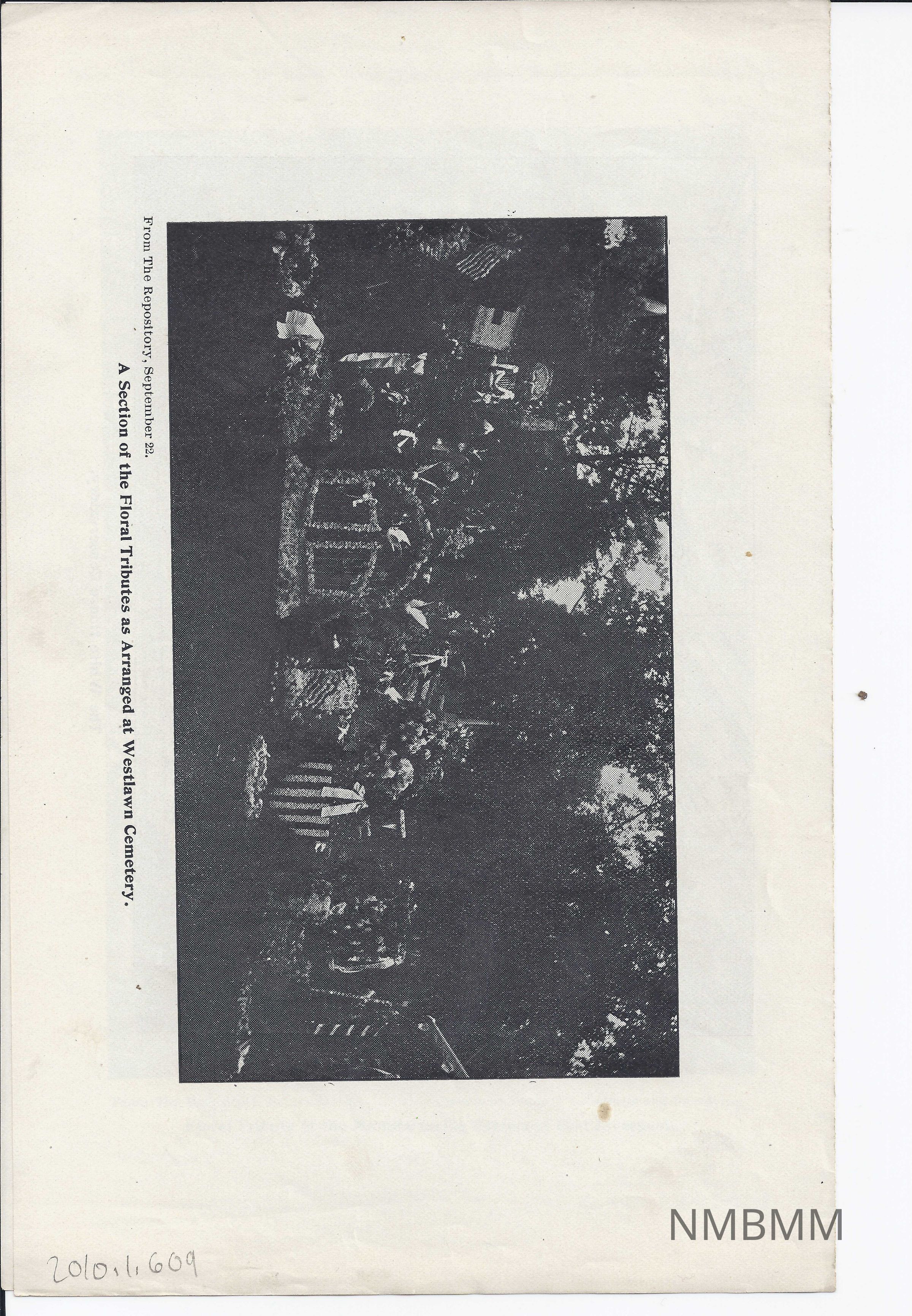 This is a supplement from the Canton Repository. The front has an image of the floral emblem of the Emporer of Russia. The inside has images of the floral tribute sent from the Manufacturing Potters of East Liverpool, Ohio and the White House Conservatory. The last page has an image of floral tributes at the Westlawn Cemetery.Collection