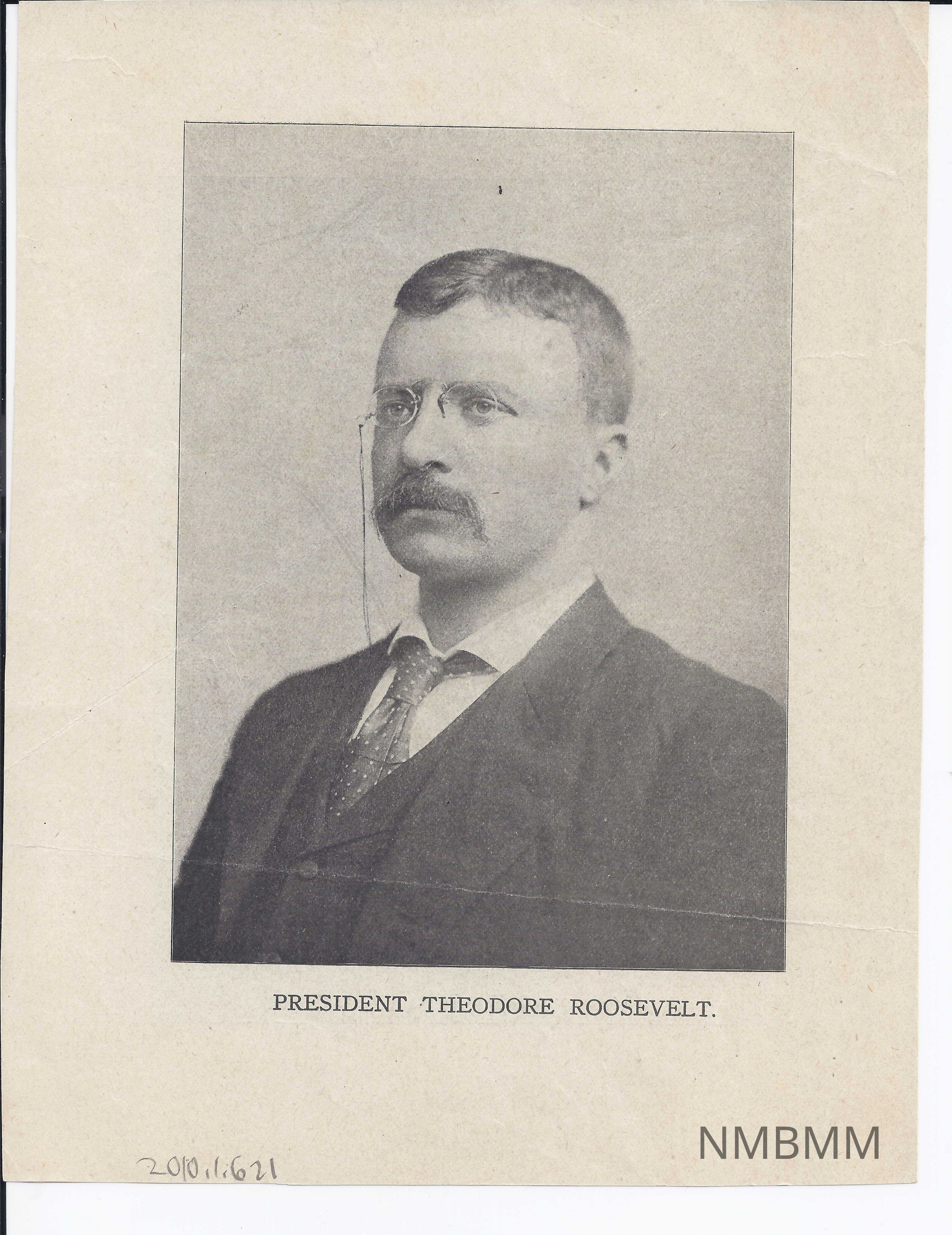 Newspaper supplement that has an image of the Temple of Music on one side and a portrait of Theodore Roosevelt on the other.Entry/Object ID