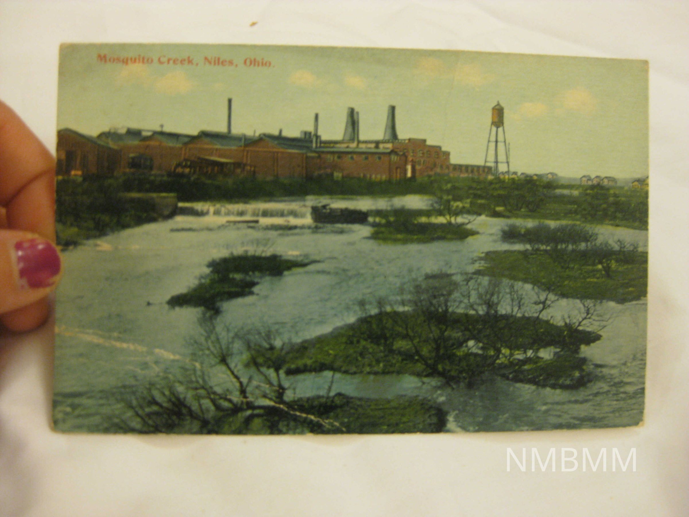 This item is a postcard with a color image of Mosquito Creek in Niles, Ohio. 5.5 by 3.5 inches. Published by the McKinley Post Card Co., Niles, Ohio.