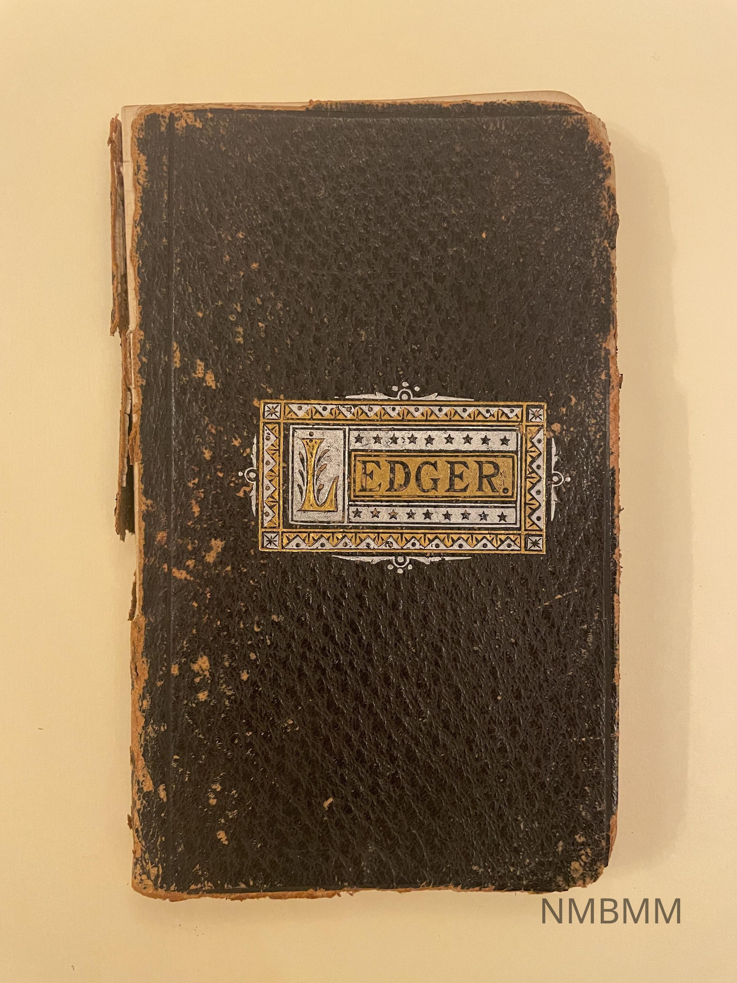 Ledger from law offices of T.H. St. John/McKinley, 1889-1892, on pages 22 and 24 are McKinley transactions. Black faux leather cover with black and gold detailing on text.Collection