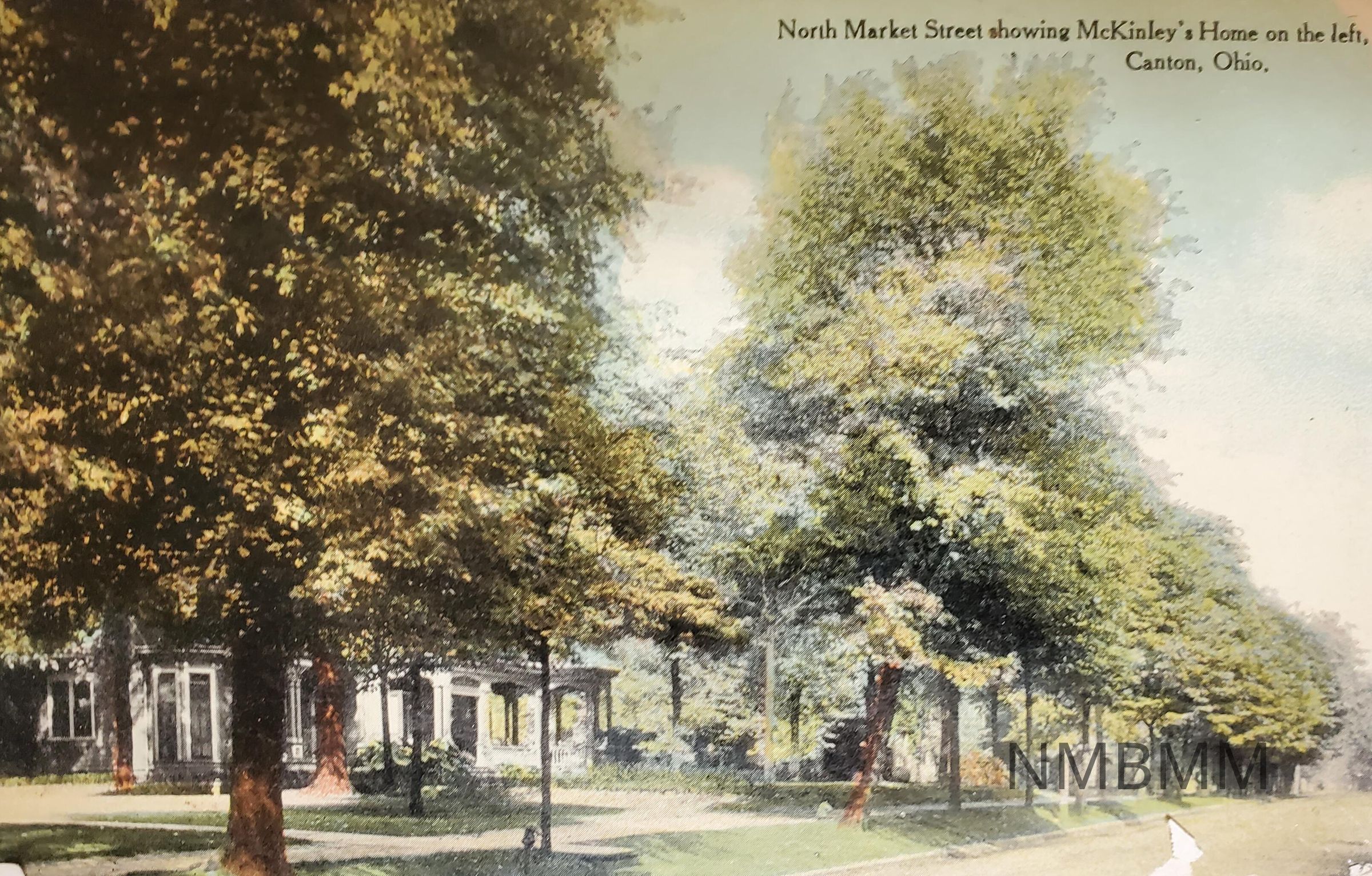 Postcard depicting President McKinley's residence in Canton, Ohio. North Market Street showing McKinley's Home on the left, Canton, Ohio. Made by the Independent Five & Ten Cent Stores.