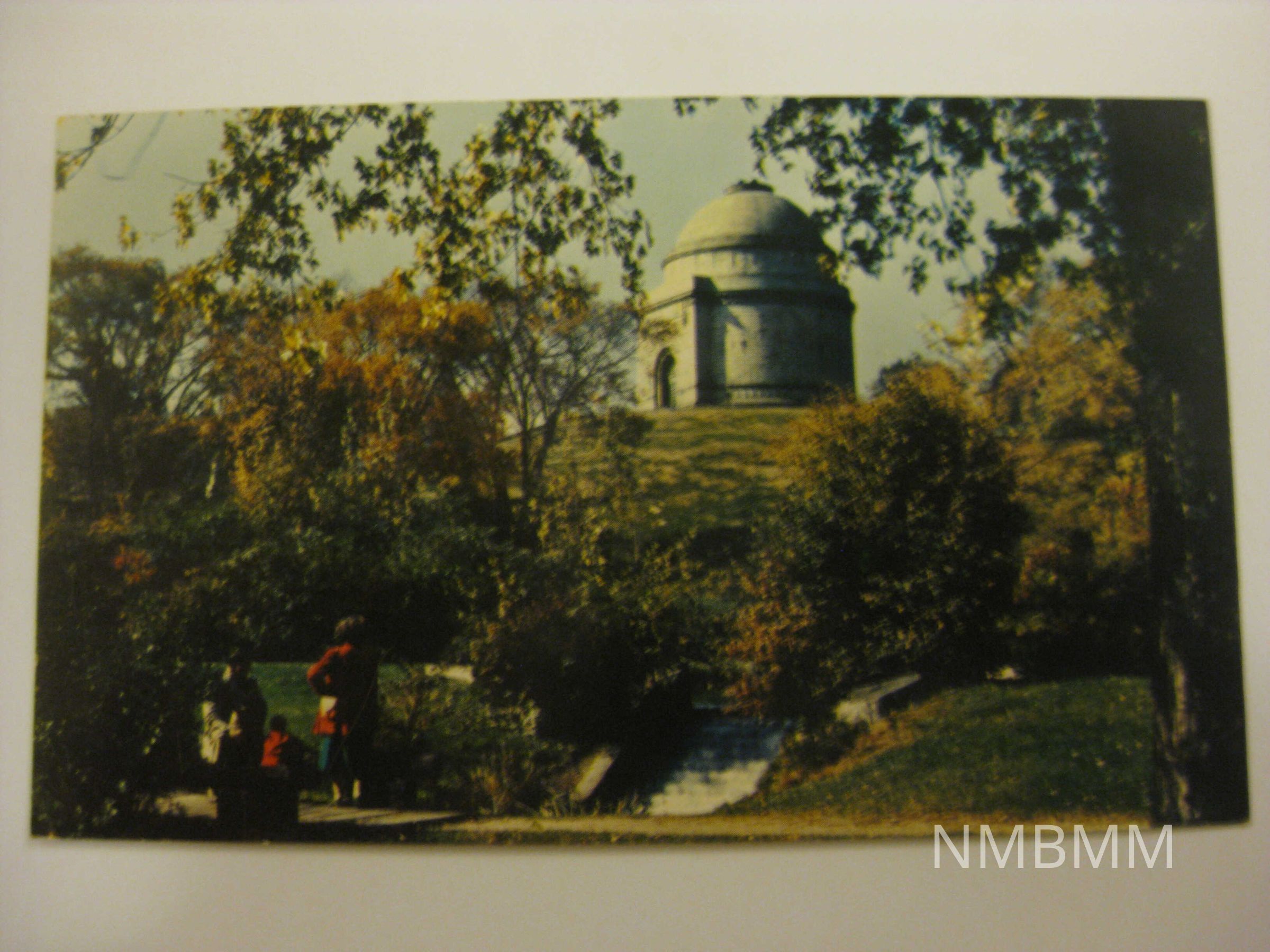 This item is a postcard depicting the McKinley tomb and monument in Canton, Ohio. The tomb is in the background and the foreground contains trees and three people in the foreground. The back reads,"McKinley Monument- Canton, Ohio. This monument is the focal point of a 600 acre park system used extensively for recreation by citizens of the Canton area."