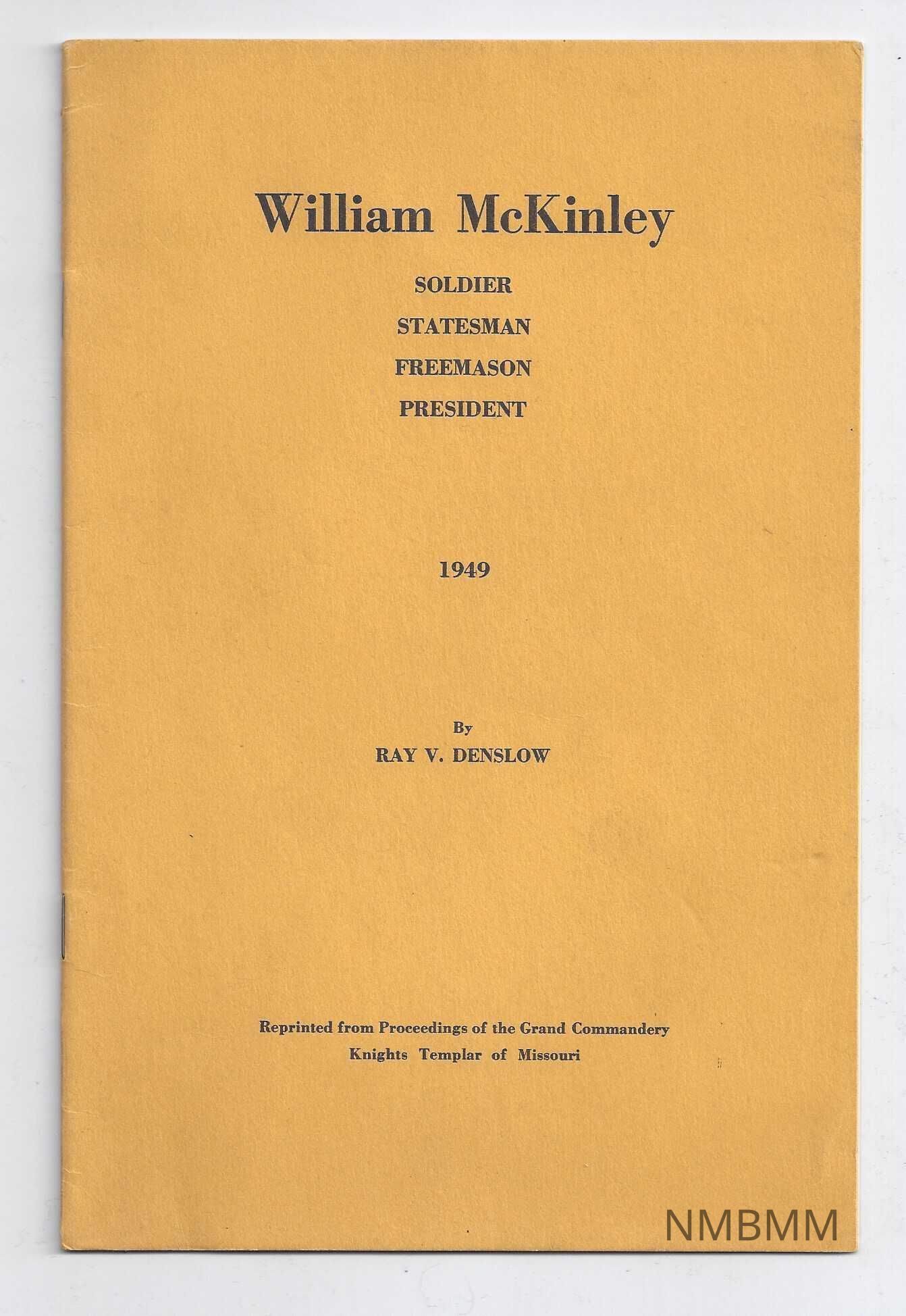 This essay traces the origin of McKinley's freemasonry. The booklet has a yellow cover, with lettering in black. 6 x 9 inches, yellow cover with black lettering, white pages