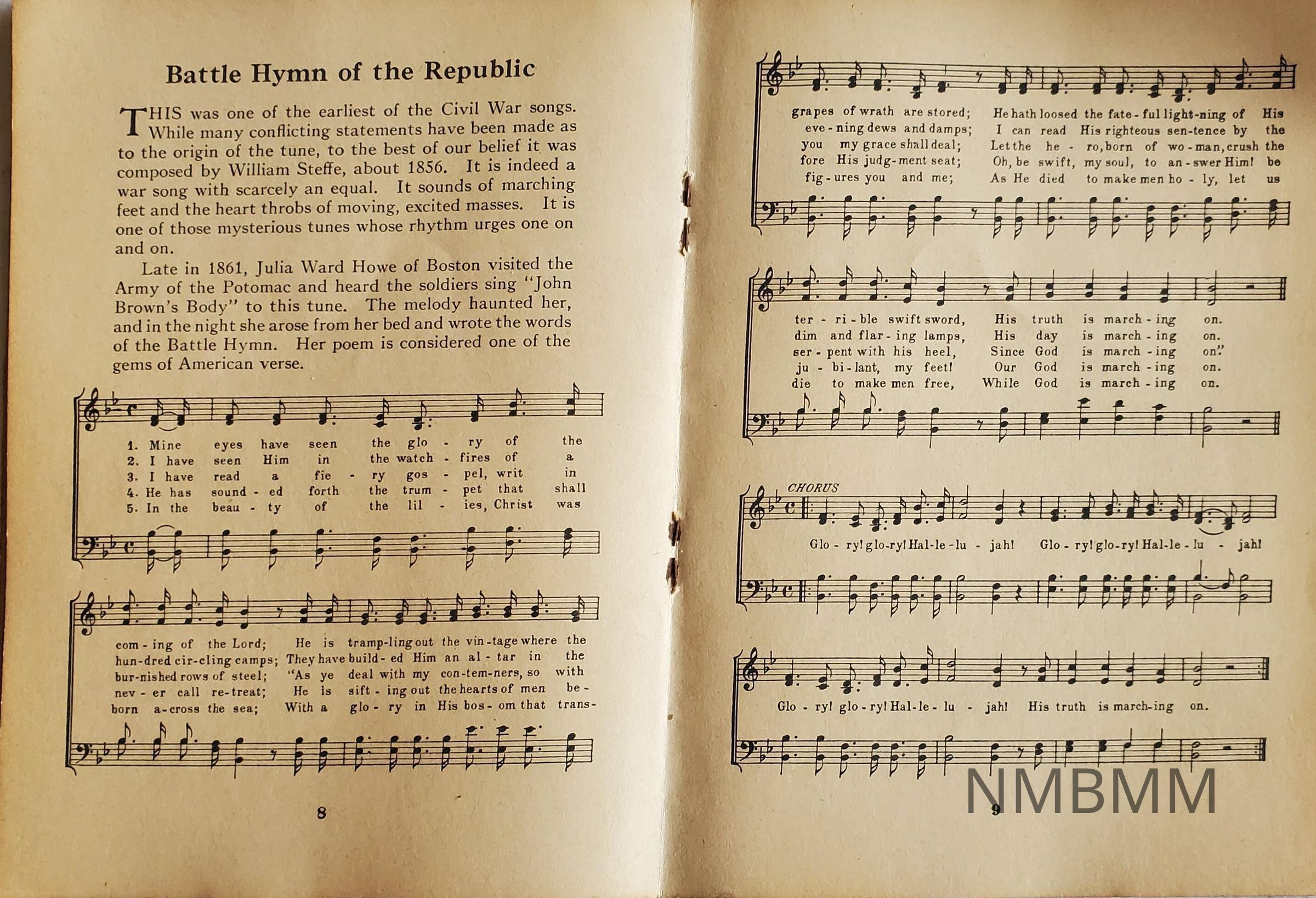 "Patriotic Songs of America" Published By Hancock Mutual Life Insurance Company, 1928. Songs included are : "Star Spangled Banner", Hail Columbia, Yankee Doodle, Battle Hymn of the Republic, Dixie Land, America the beautiful, Tenting on the Old Camp Ground, America.