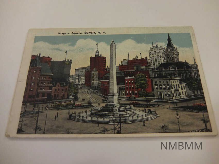 This item is a postcard containing portraits of buildings and sites in Buffalo, New York, including views of main street, Delaware Park, Hotel Statler, McKinley Monument, Humboldt Park, Concrete Grain Elevator, Shelton Square, Hotel Lenox, Niagra Square, City and County Hall, Electric Building, Milburn Residence, Post Office Building, Temple of Music, Albright Art Gallery, and the Wilcox House. Some of the postcards contain photos of William McKinley, Ida McKinley, and Theodore Roosevelt.