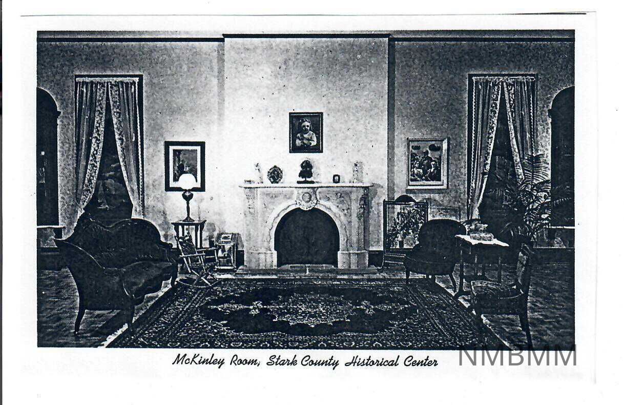 This is a black and white photocopy of a postcard of the McKinley Room, Stark County Historical Center.Collection