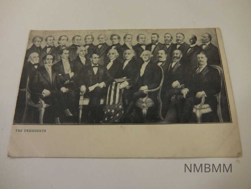 This item is a postcard containing a drawing of the first twenty five Presidents of the United States. Some of them are seated, including Theodore Roosevelt on the far right, and some of them are standing, including William McKinley second from the right. Published by C. G.Deauble, Canton, Ohio.Collection