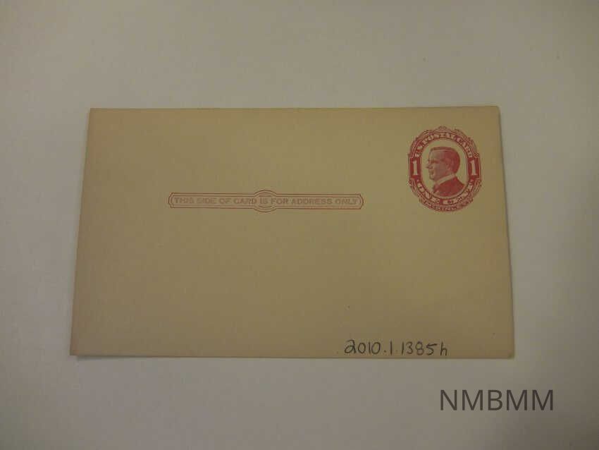 This item is a postcard with a printed 1cent stamp containing President McKinley's portrait, and the front reads "This side of card is for address only."Collection