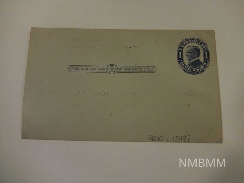 This item is a postcard by the C.E. Currier Shoe Company, manufacturers of Boys', Youths', and Little Gents', Misses' and Children's Shoes in Boston, Massachusetts. The card contains a printed blue stamp with a portrait of President McKinley.Collection