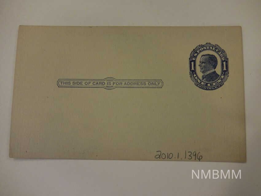 This item is a postcard by the Camp Clerk's of Rock Island, Illinois for payment of dues to the organization. The card contains a printed blue stamp of with a portrait of President McKinley.Collection