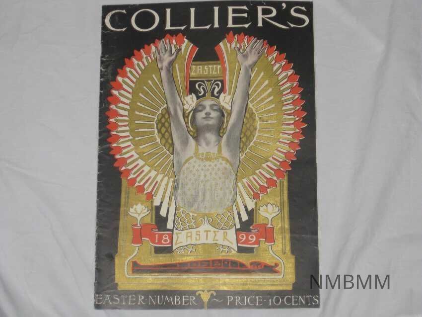 An issue of Collier's Weekly, an illustrated journal of art, literature and current events, Vol. 22 No. 26, published April 1, 1898 in New York by Peter Fenelon Collier. The cover features a color picture of a woman rasing her hands against a bright background and the title Easter Number.Collection