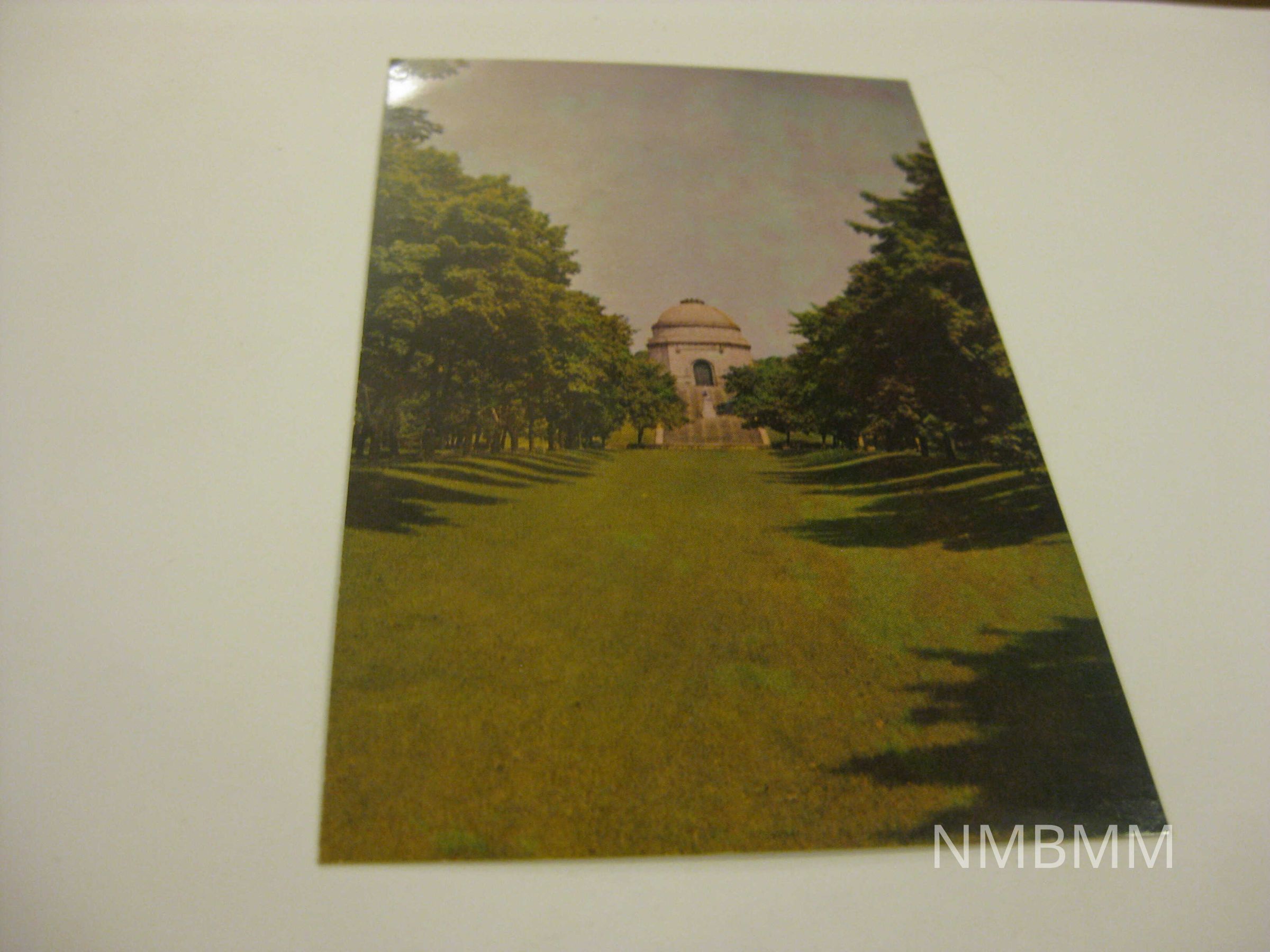 This item is a vertical color postcard with a photograph of the McKinley Memorial dome, stairs, trees, and grass mall. Split Back: McKinley Memorial. The bodies of William McKinley, 25th President of the United States, and Mrs. McKinley repose in this memorial at Canton. It was built by public subscription as a tribute to the President who had been assassinated at Buffalo in 1901. The McKinley Memorial is administered by the Ohio Historical Society, Columbus. A Natural Color Reproduction by the Ohio Historical Society.Collection
