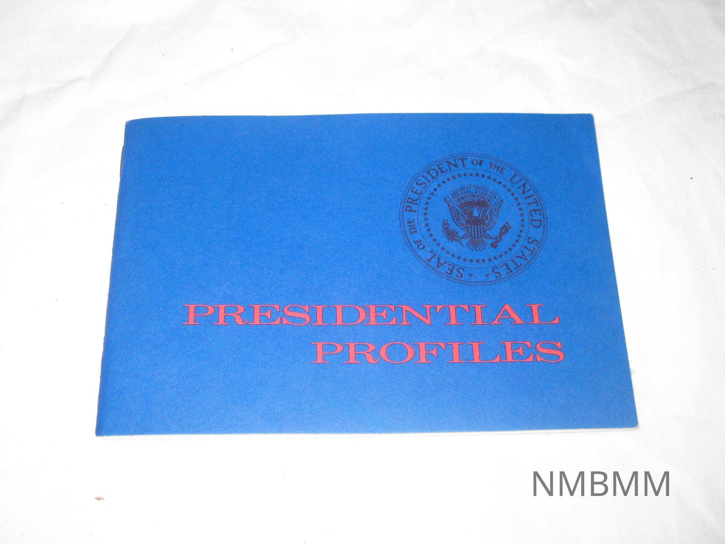 The item is a commemorative pamplet/booklet entitled, "Presidential Profiles." The book features a sketch of each president's commemorative coin along with a short biography about them.Collection