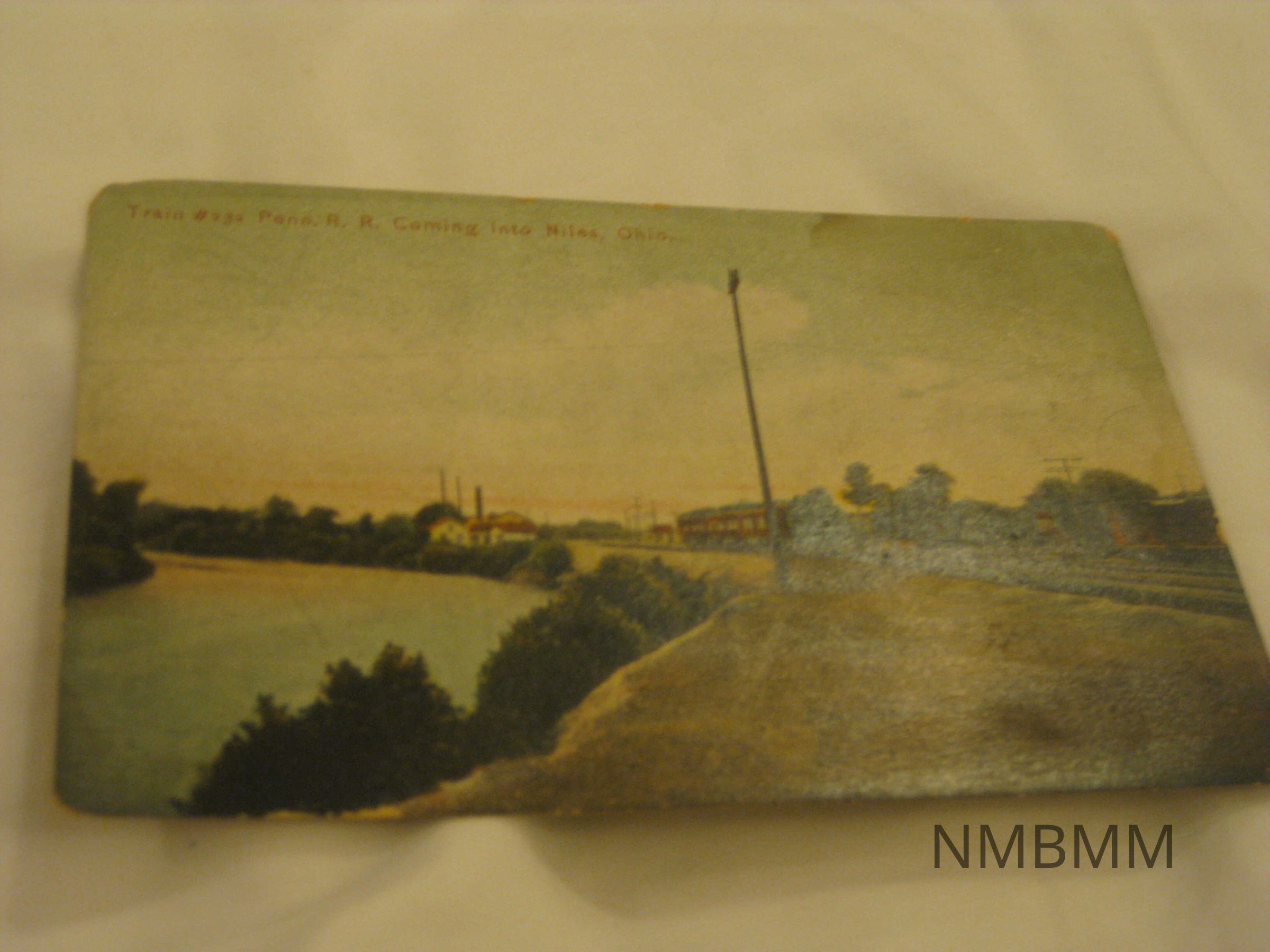 This item is a postcard with a color image of a train in Niles, Ohio. Caption reads "Train #232 Penn. R.R. Coming Into Niles, Ohio." Published by the American News Company, New York. 5.5 by 3.5
