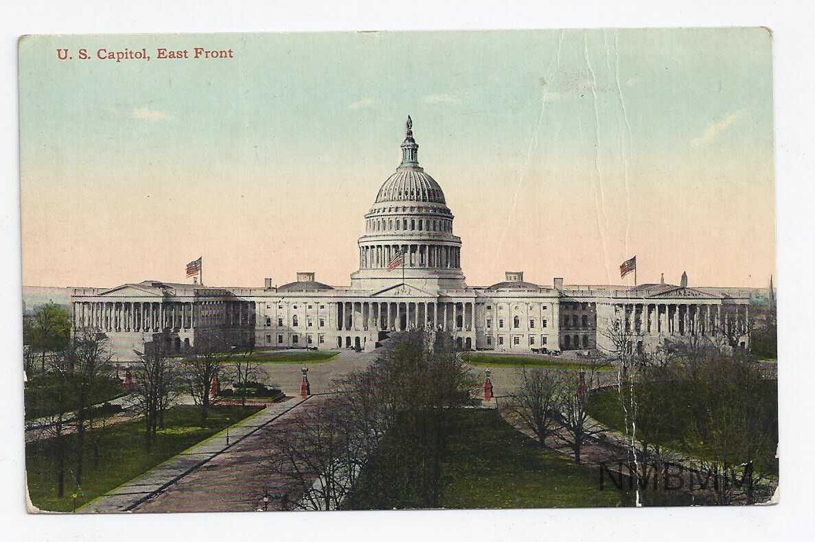 Colored postcard showing "U.S. Capitol, East Front."