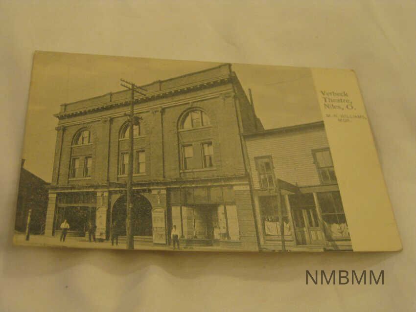 This item is a postcard with a black and white image of Verbeck Theatre in Niles, Ohio. 5.5 by 3.5.Collection