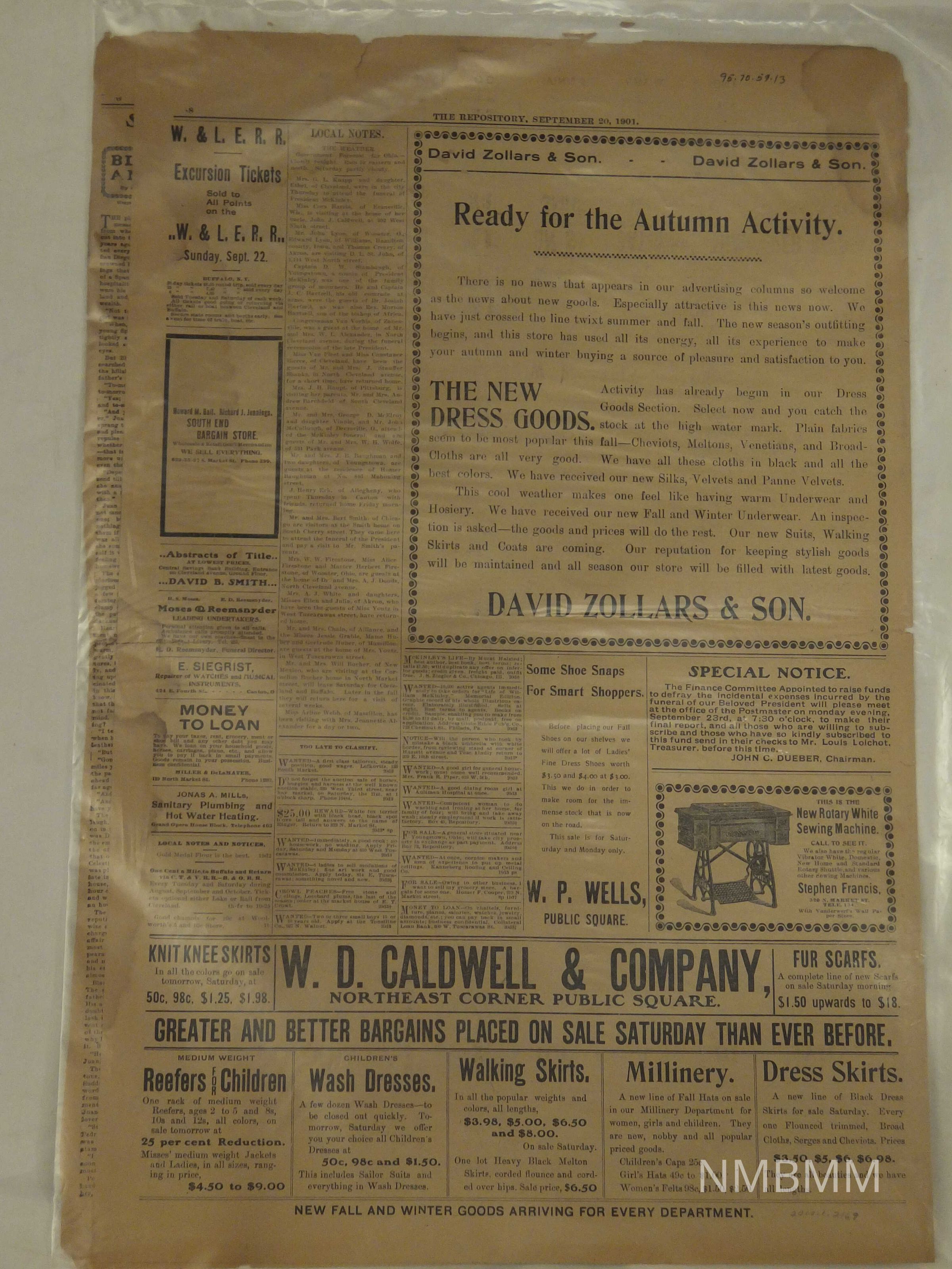 09/20/1901 Canton Evening Repository. Headline reads "A M'Kinley Monument." Articles about the McKinley Monument; President William McKinley's services; Mrs. McKinley's condition and her visit to the tomb of her husband at Westlawn Cemetery.Collection