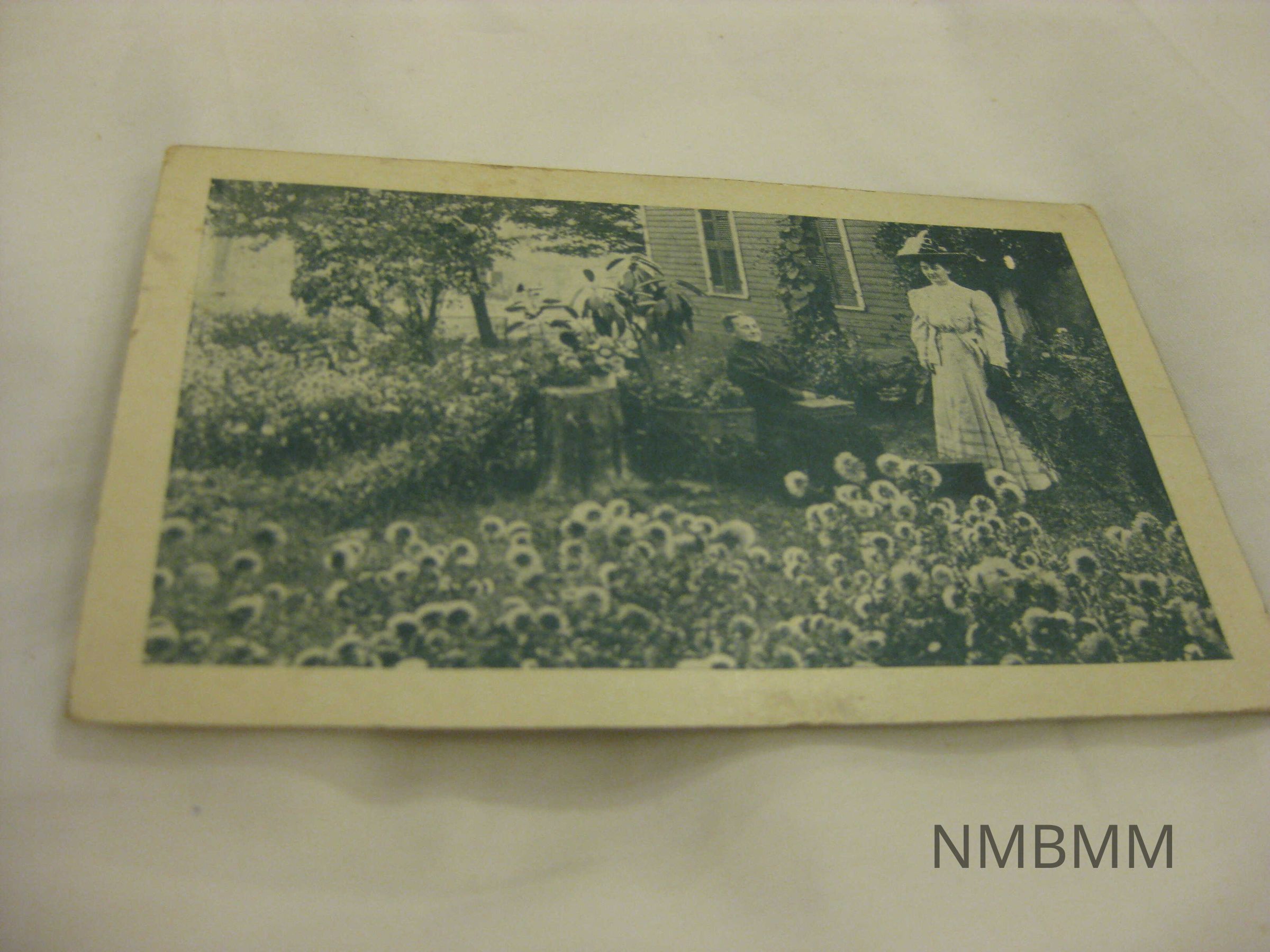 This item is a postcard with a black and white image of women in the garden at McKinley's birthplace in Niles, Ohio. Received January 2, 1909. 5.5 by 3.5.