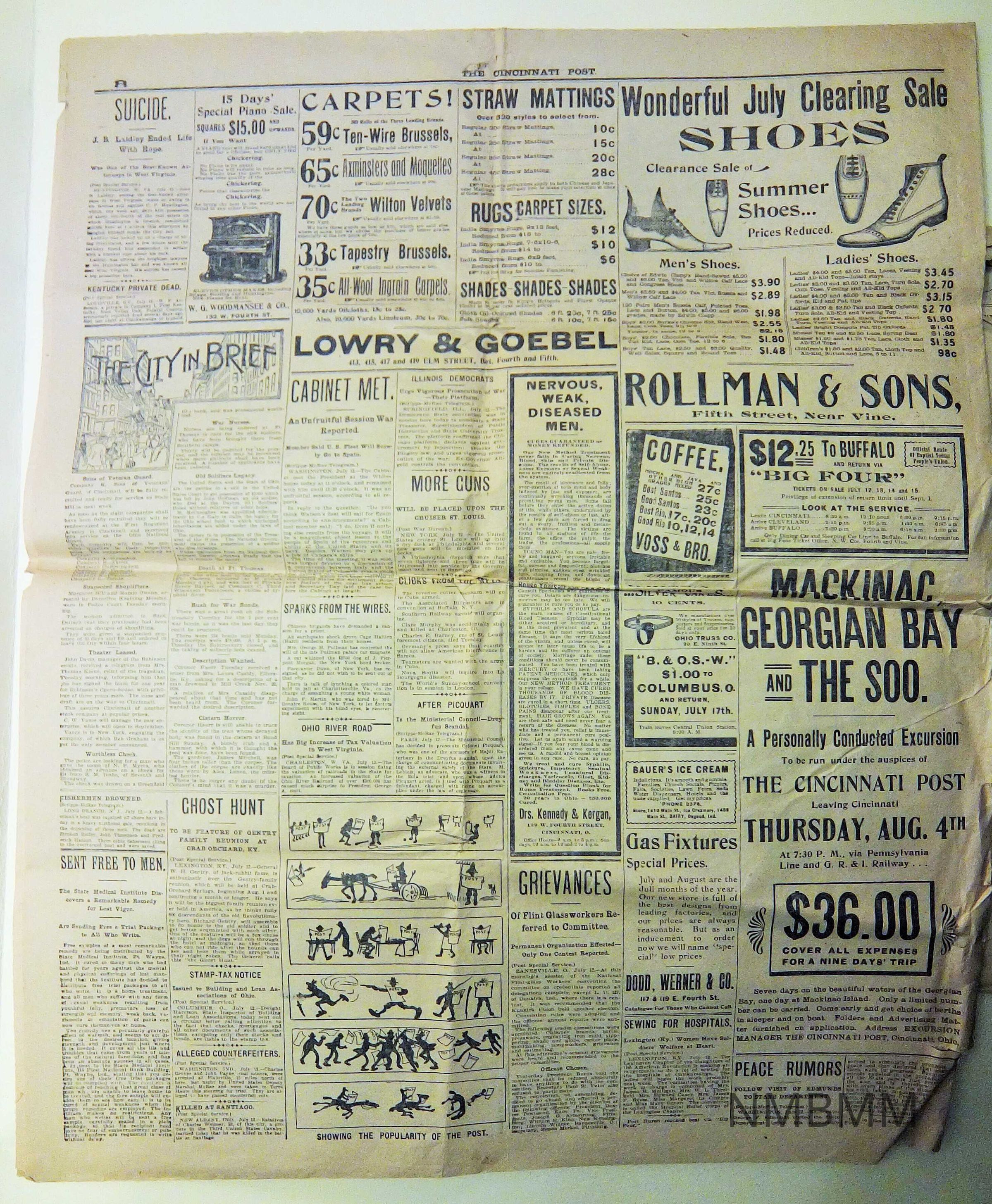 Information about the Spanish American War and Santiago. Headline reads: "Santiago Is To Be Starved Out. The Spanish Army Will Be Harassed by Americans Until Its Commander Shall Surrender. United States and Cuban Lines Completely Surround the Enemy --- Idea of Carrying the City Assault Has Been Abandoned---Miles at the Front. Vol. XXXVI - No. 9 ; 8 p. ; ill. ; 22 " Newspaper very brittle and delicate.