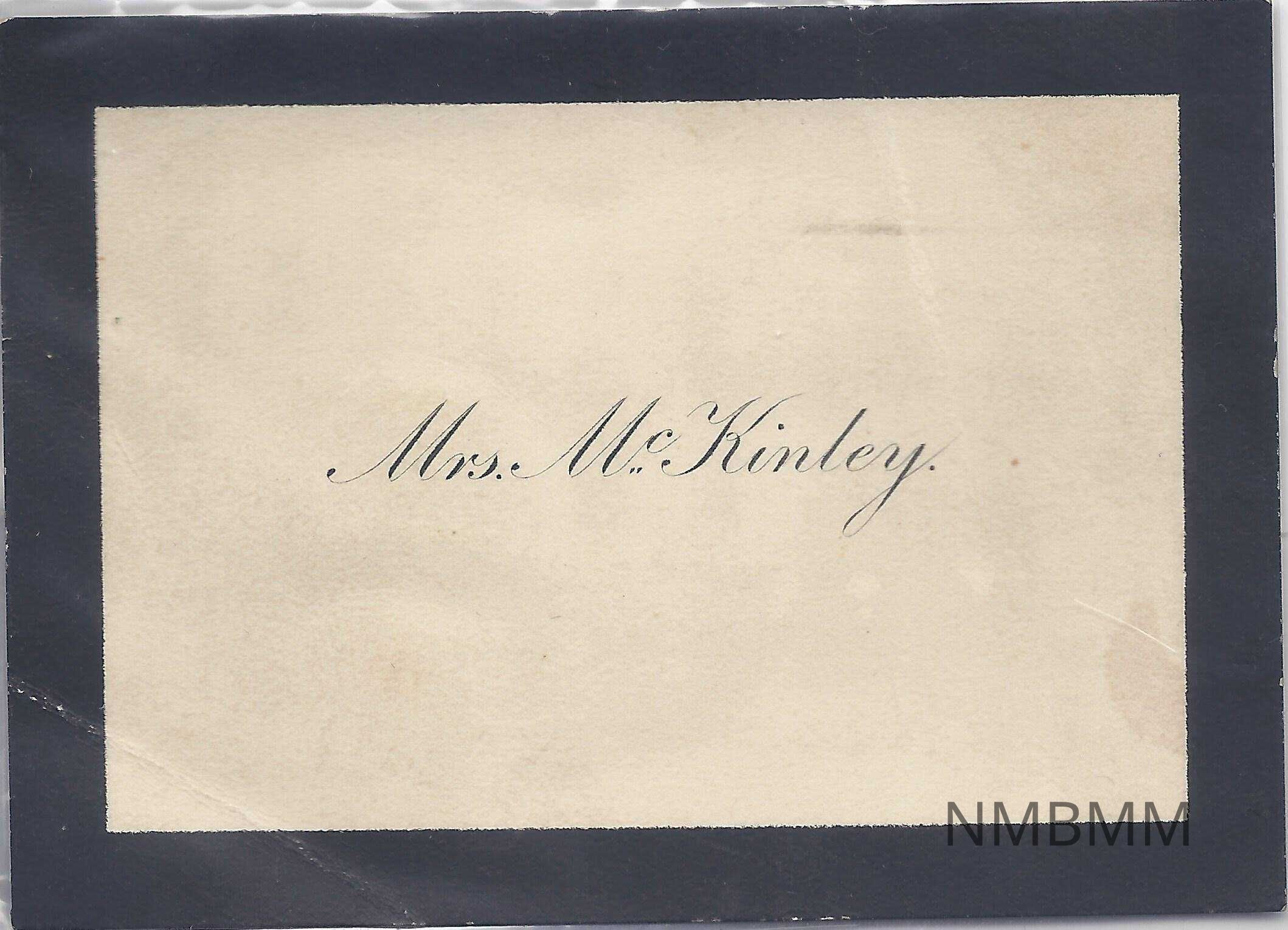 A small card with Mrs. McKinley printed on it. 3.5 x 2.5 inches