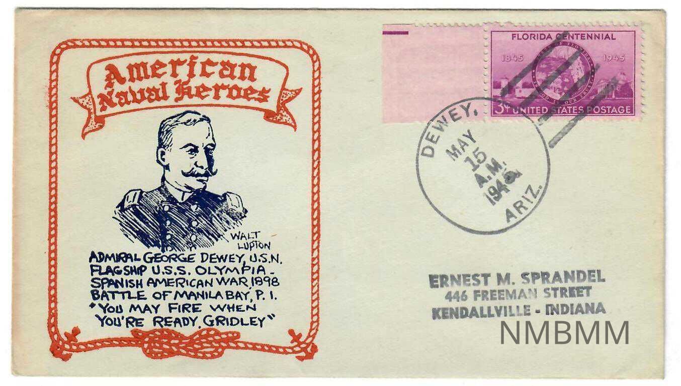 American Naval Heroes, Admiral George Dewey, Envelope Cover, May 15, 1945, Addressed to Ernest M. Sprandel.Entry/Object ID