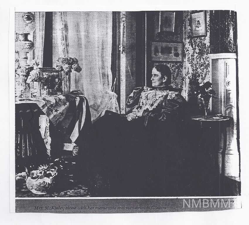 This is a xerox copy of a photograph of Mrs. Ida McKinley. Mrs. McKinley alone with her mementos and memories in Canton. Courtsey of the Canton Repository.Collection