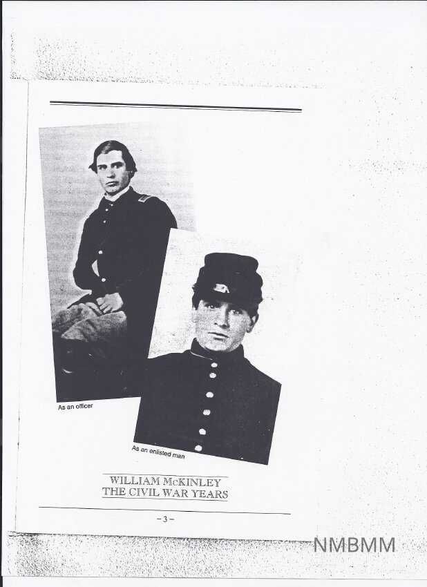 This is a xerox copy of two photographs of young William McKinley in the military during the Civil War. The picture in the left is of William as an officer and the picture on the right is William as an enlisted man.Collection
