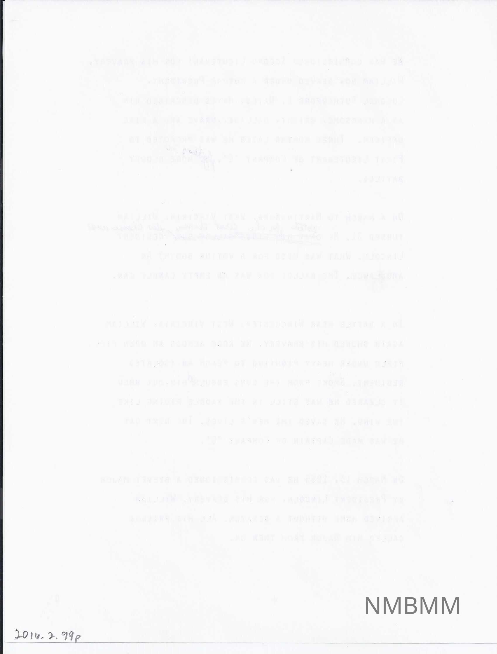 On March 13, 1865 he was commissioned a Brevet Major by President Lincoln, for his bravery. William arrived home without a scratch. All his friends called him Major from then on.Collection