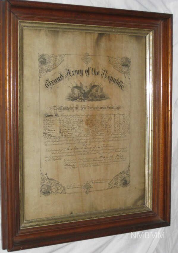 PROCLAMATION OF THE GRAND ARMY OF THE REPUBLIC, DECEMBER 24, 1878. WOOD FRAME. 20" X 25" SIGNED BY JAMES SEYMOUR, DEPARTMENT COMMANDER.Collection