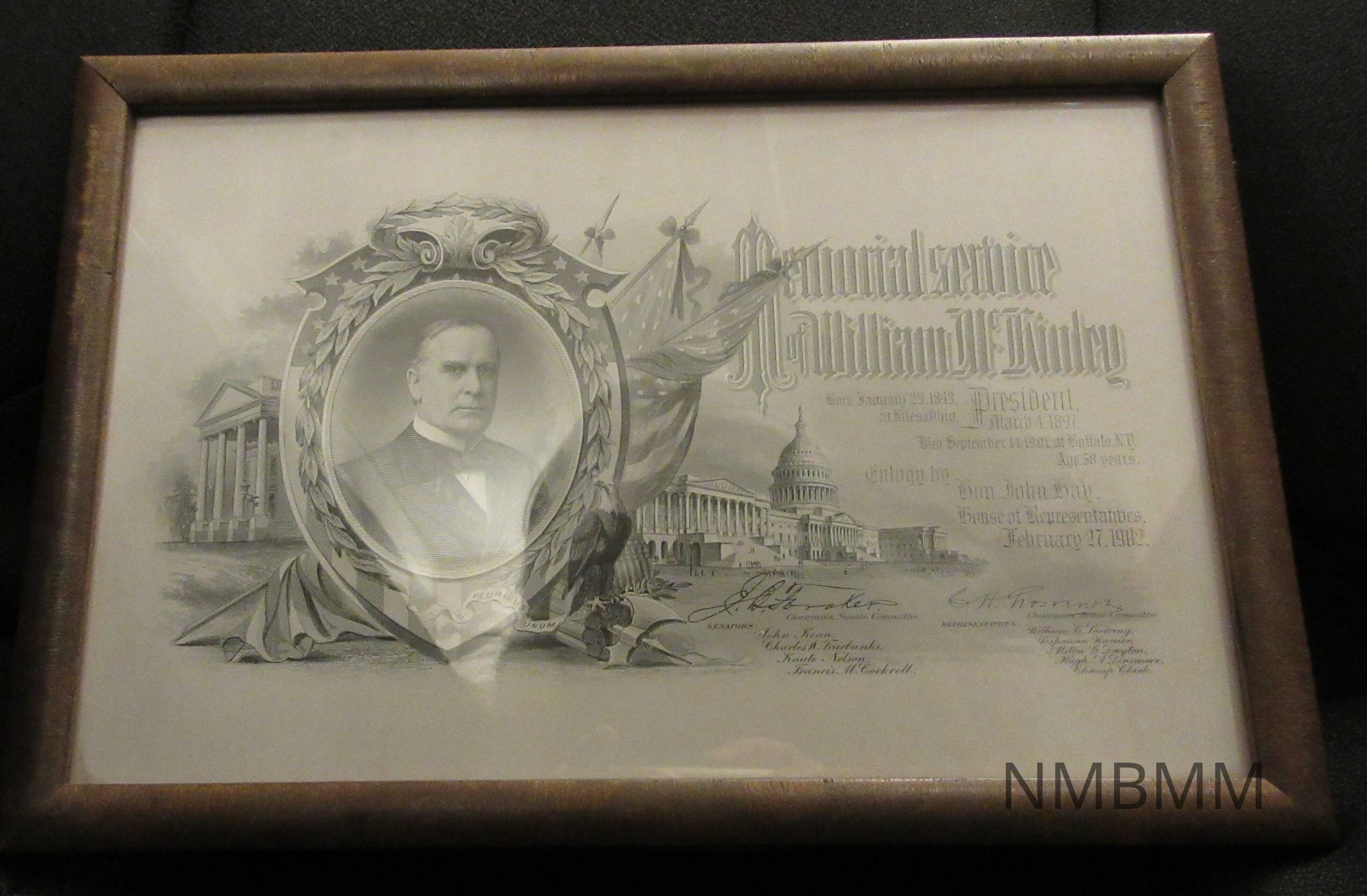 PROGRAM COVER OF WASHINGTON, D.C. MEMORIAL SERVICE ENGRAVED. BLACK AND WHITE WITH PICTURE OF MCKINLEY WOOD FRAME. 8" X 11" FEBRUARY 27, 1902.Collection