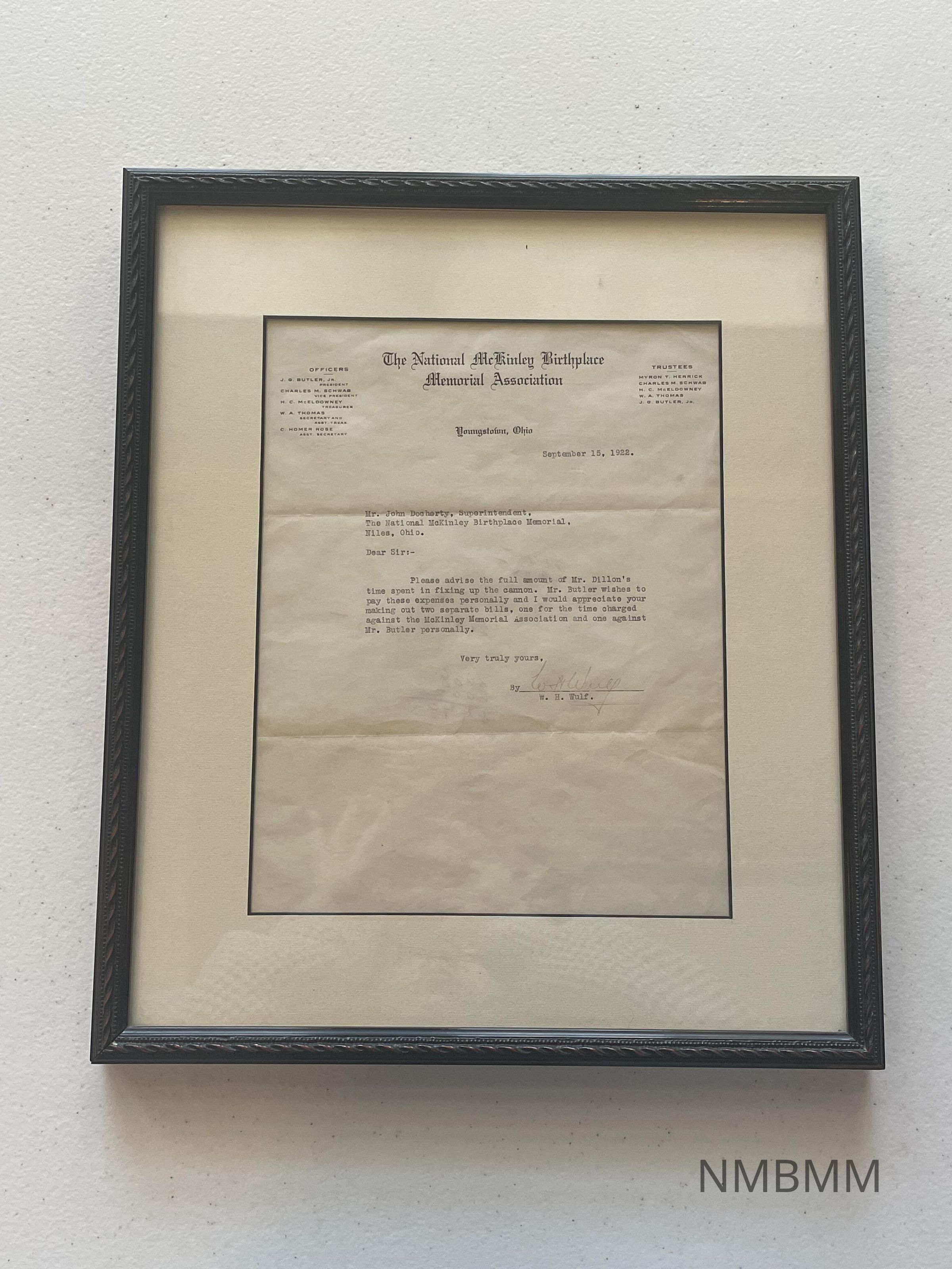 Letter from W.H. Wulf to John Docherty regarding the cannon in the collection.Acquisition