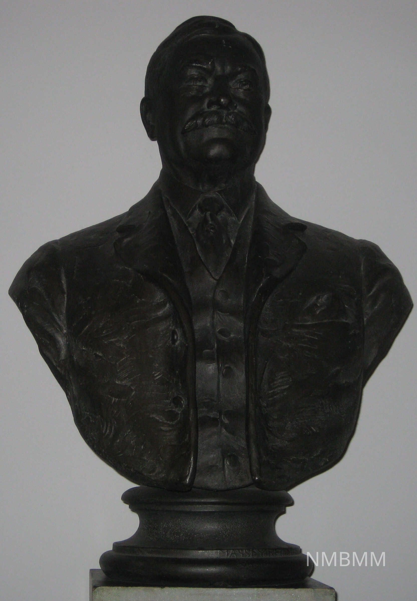 BRONZE BUST OF GEORGE REEVES, 37" HIGH. MARBLE PEDESTAL, 60" HIGH WITH BIOGRAPHICAL INFORMATION ON MARBLE BASE " ALLIANCE OHIO; BORN JULY 7TH 1850; VICTORIA MONMOUTHSHIRE ENGLAND; RESIDENT OF NILES 1871-1893; A PROGRESSIVE CONSERVATIVE MANUFACTURER AND FABRICATOR OF IRON AND STEEL; A DEEP THINKING CHARITABLE CITIZEN; DIED APRIL 10, 1916 MIAMI FLORIDA"Collection