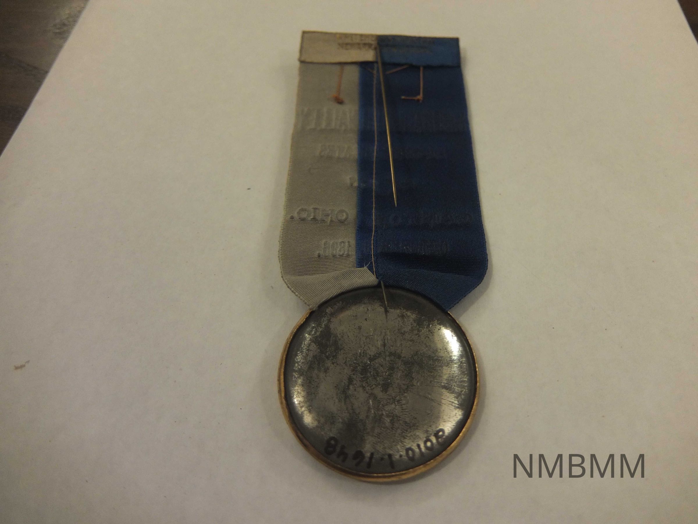 This item is a campaign pin. The pin features a photo of William McKinley and his 1986 running mate Garrett Hobart. A blue and grey ribbon with US flag attachment is inscribed. Shenandoah Valley Ex-confederates Canton, Ohio October 9, 1896. The back of the ribbon is inscribed Whitehead and Hoag Co. Newark, New Jersey.Collection